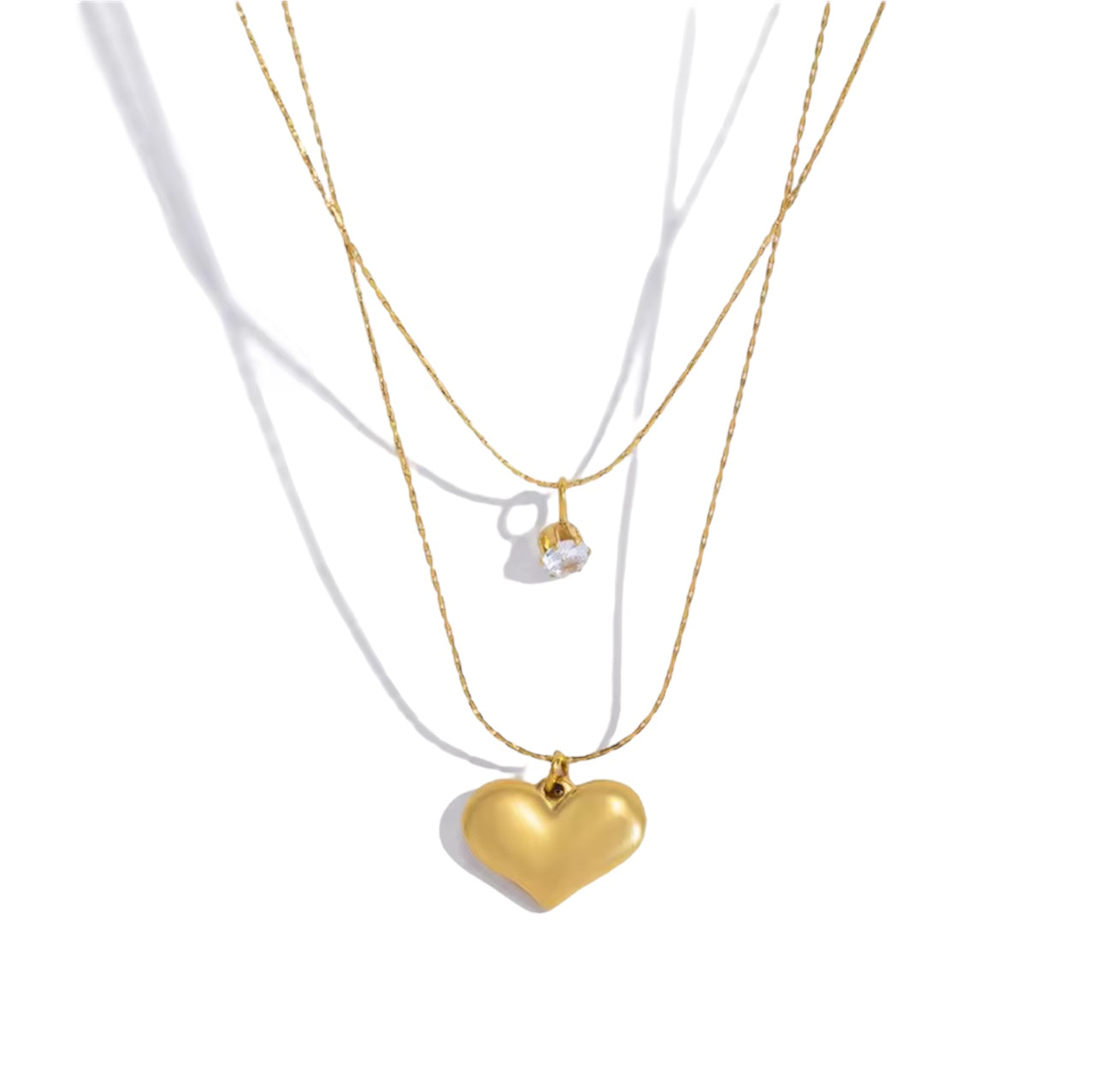 Cadena doble y aretes con circonita cúbica enchapados en oro 18k