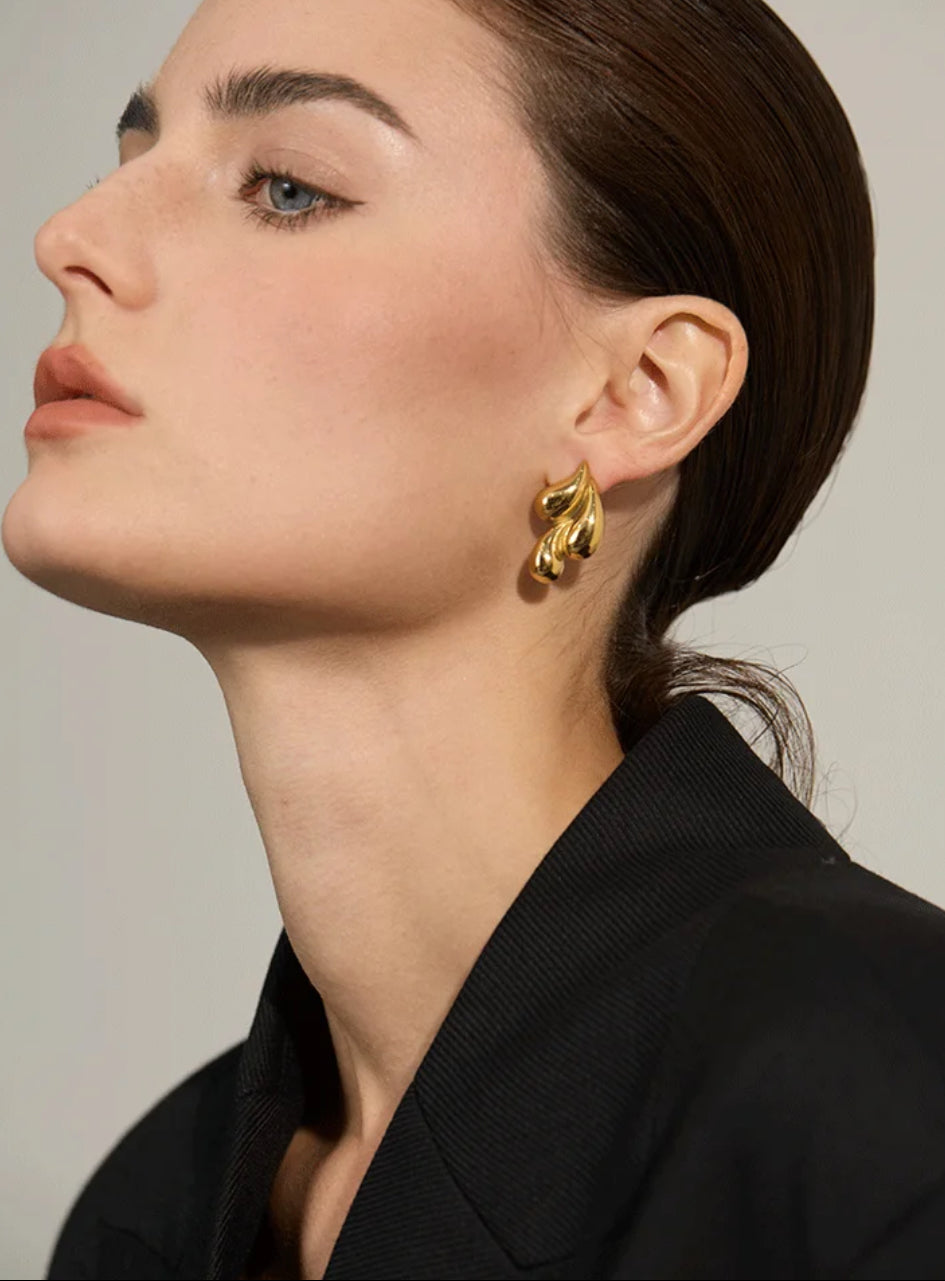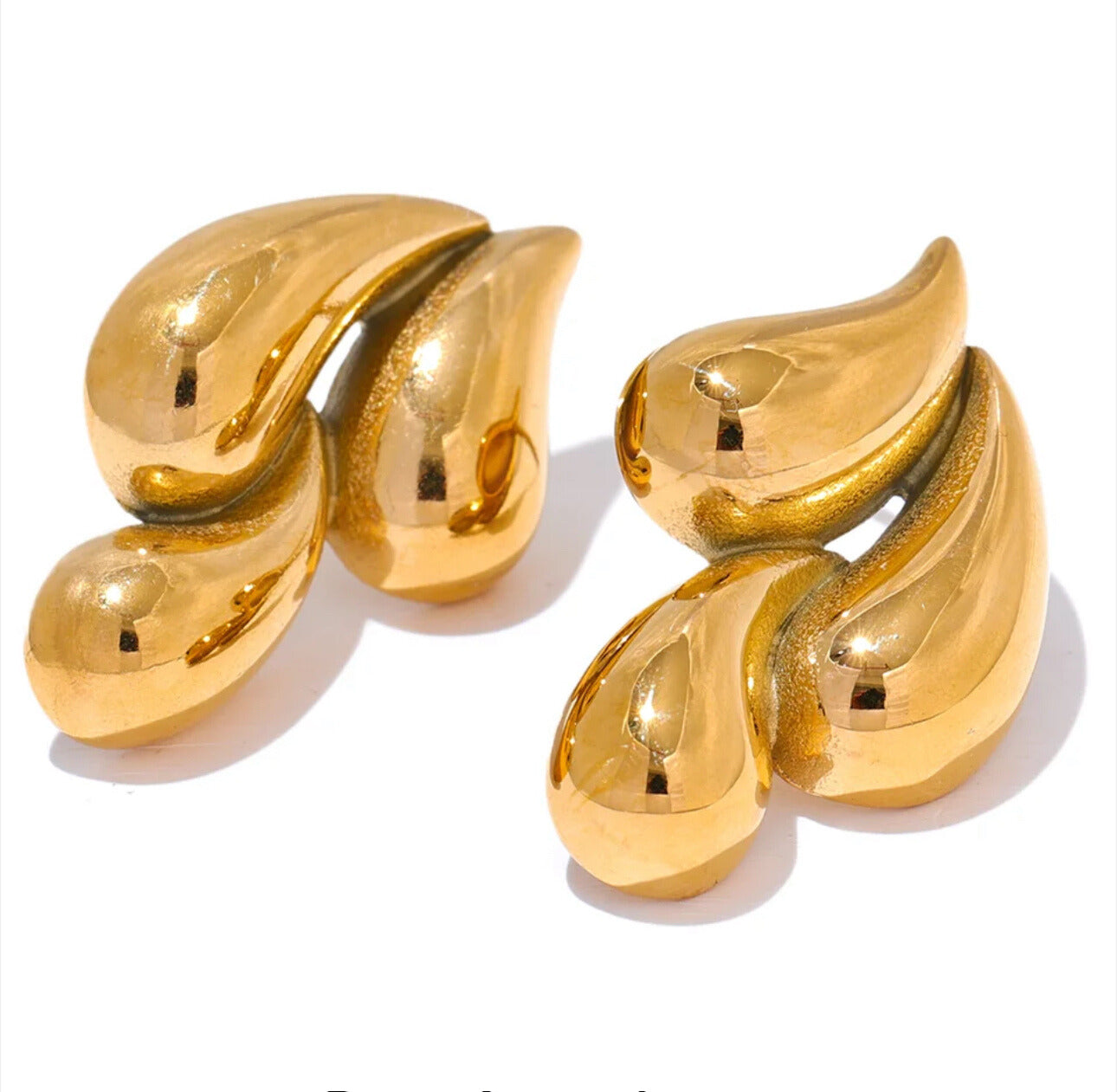 Estos aretes en forma de 3 gotas de agua son preciosos para usar a diario. Hechos de acero inoxidable 316L enchapados con PVD de oro 18k, ofrecen mayor duración y un hermoso lustre. Perfectos para cualquier ocasión, añaden un toque de elegancia a tu estilo.