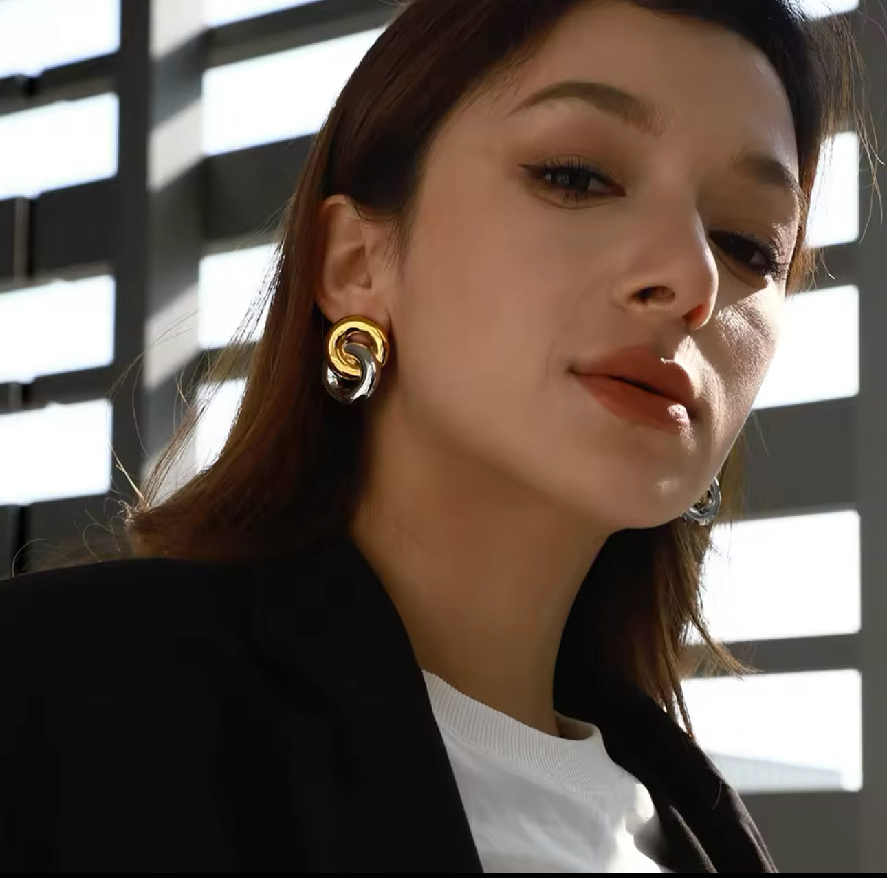 Aretes con tonos en tendencia color dorado y plateado juntos de acero inoxidable enchapado en oro de 18k