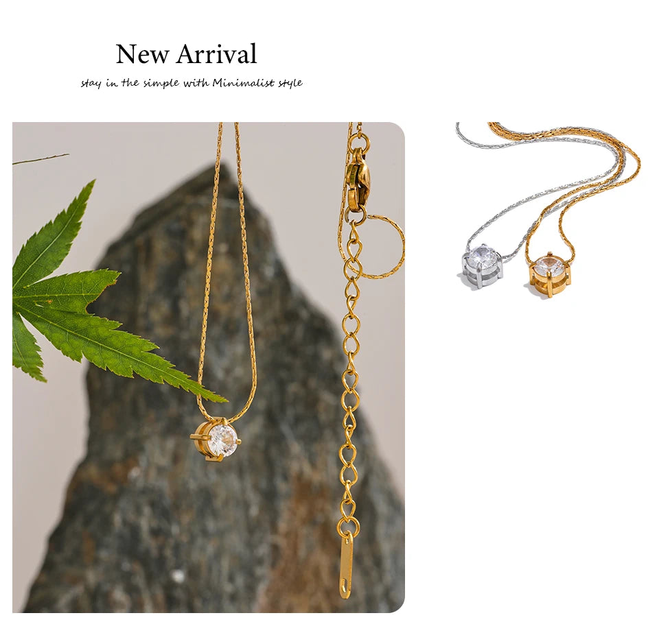 Agregue un toque de elegancia y estilo a su atuendo con este collar colgante de cadena de acero inoxidable chic coreano. Presenta una brillante zirconia cúbica fundida delicadamente, lo que lo convierte en una joya básica y duradera. Perfecto para el uso diario, este collar también es impermeable, ¡ideal para cualquier ocasión!