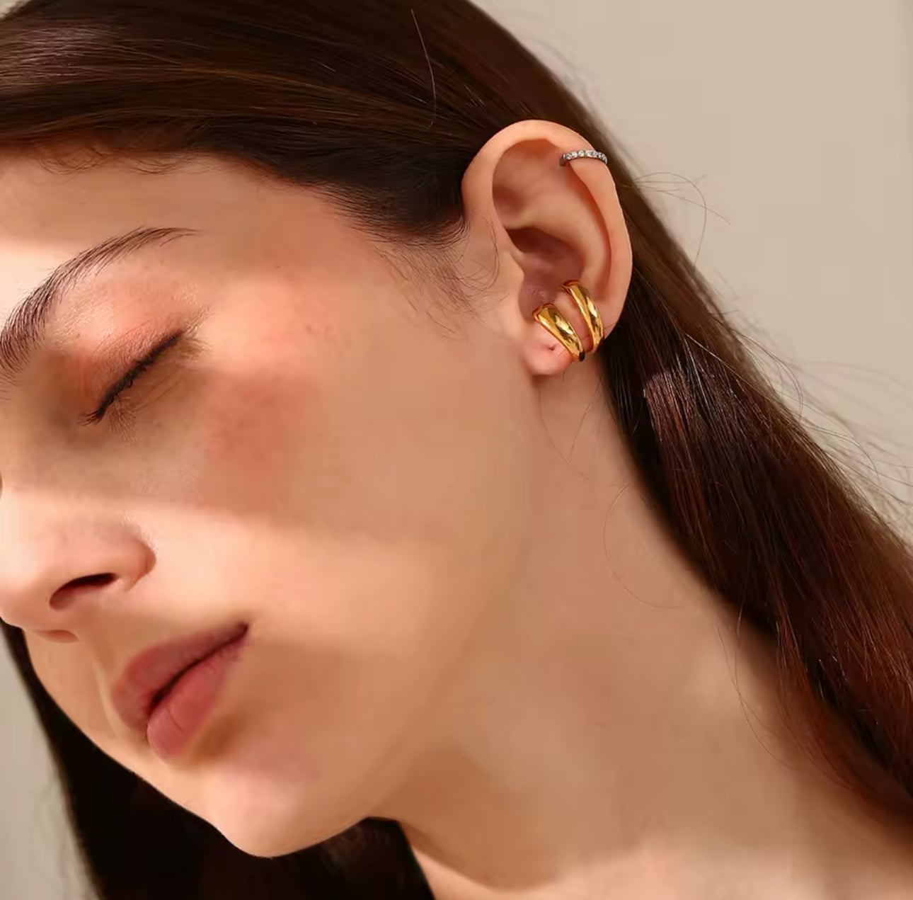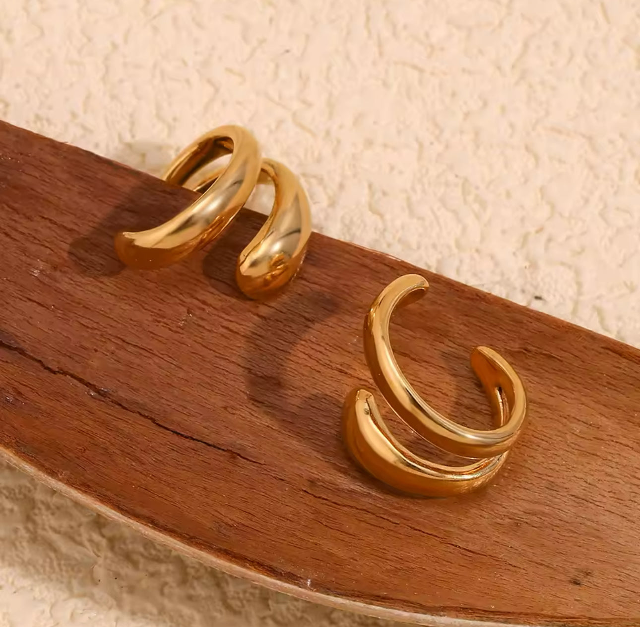 Ear cuffs minimalista líneas de doble capa chapado en oroPVD 18k orejeras pendientes de acero inoxidable mujer joyería regalo