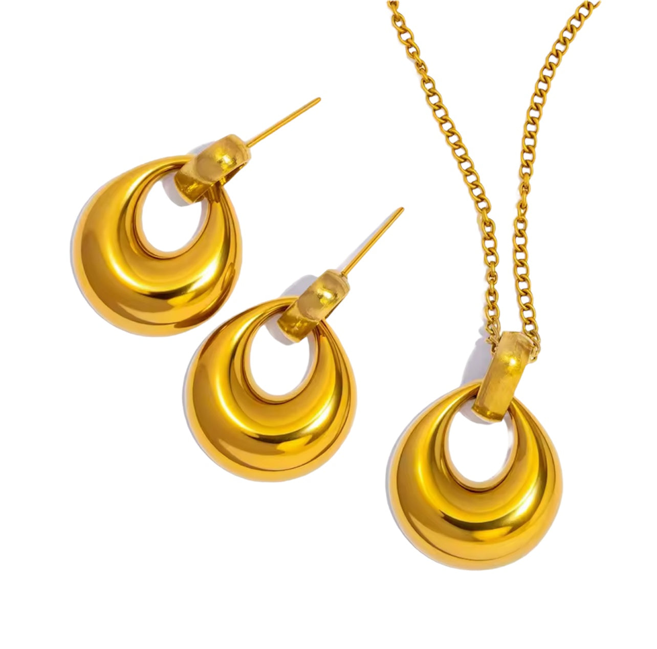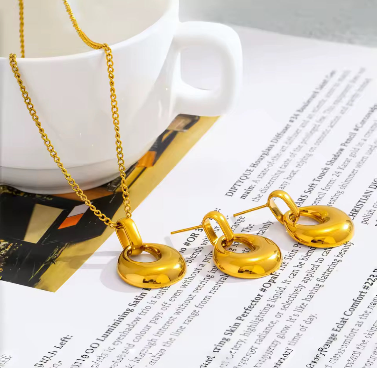 Aretes y cadena con forma de aro vintage acero inoxidable enchapado en oro 18k