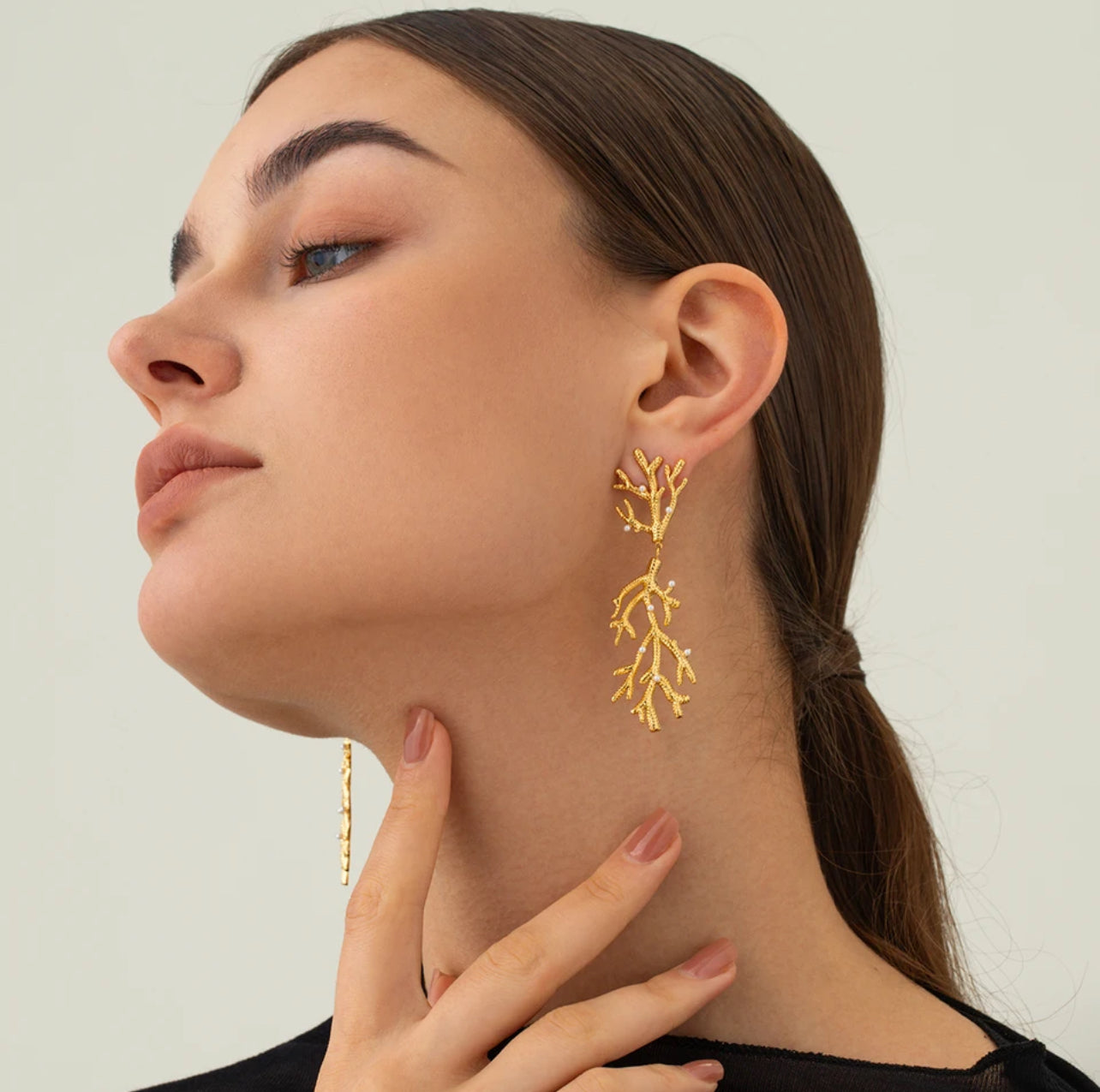 Disfruta de este verano con estilo llevando puestos los aretes de acero inoxidable enchapados en oro de 18k en forma de coral. ¡Destaca con su diseño único y las pequeñas perlas sintéticas que añaden un toque de elegancia a tu look! Hechos para durar y nunca pasar de moda.