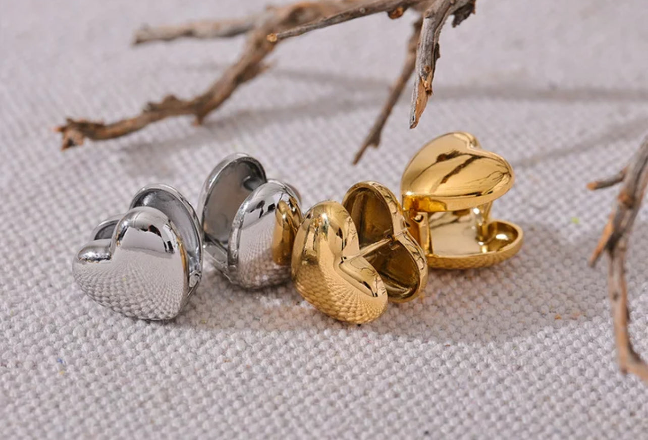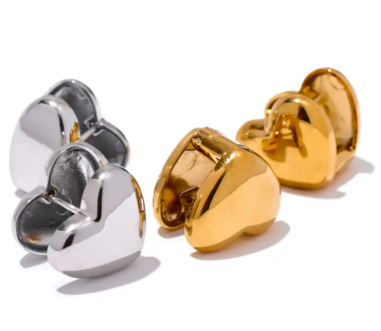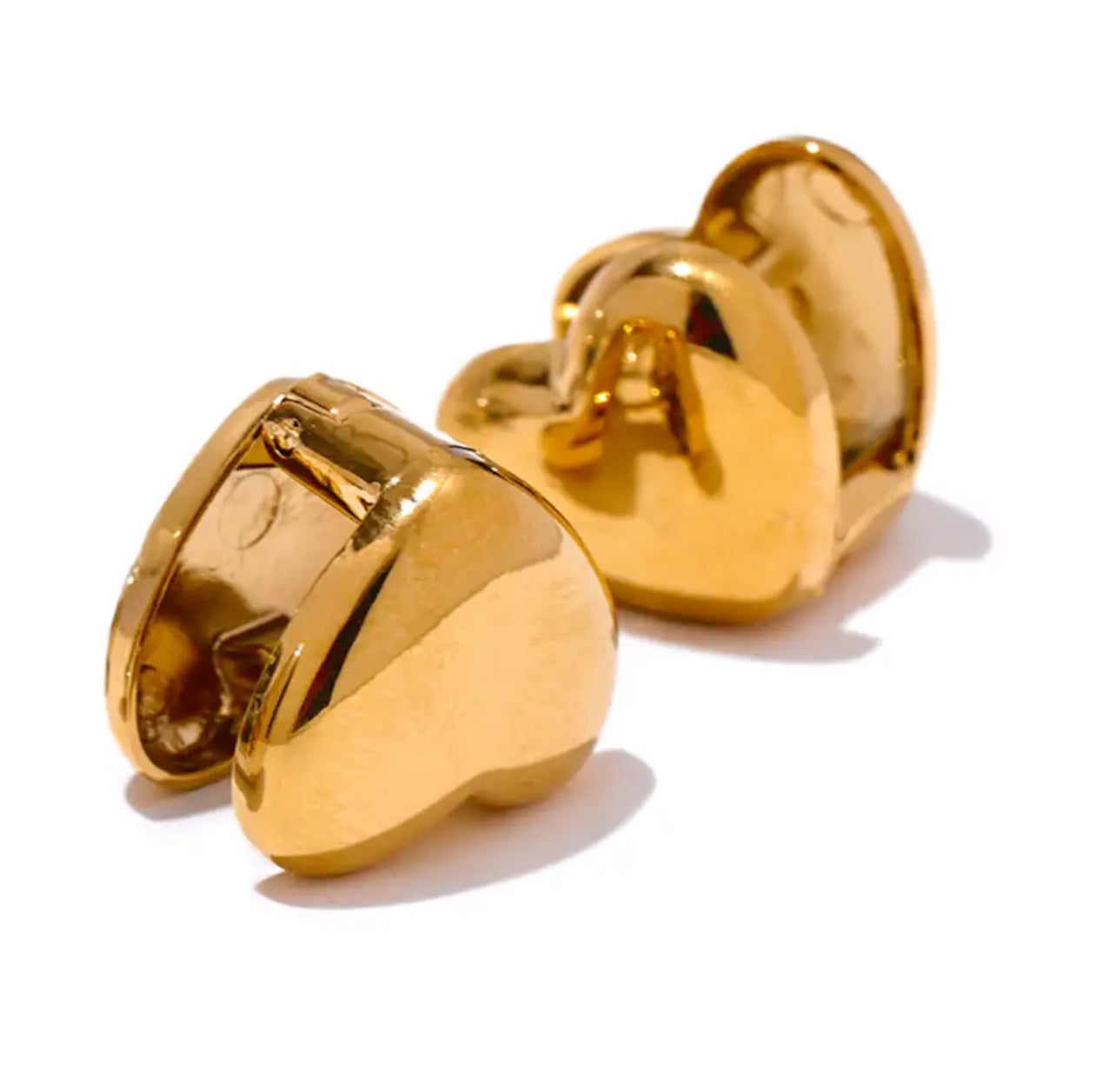 Aretes en forma de corazón de acero inoxidable enchapado en oro de 18k, impermeable e hipoalergénicos