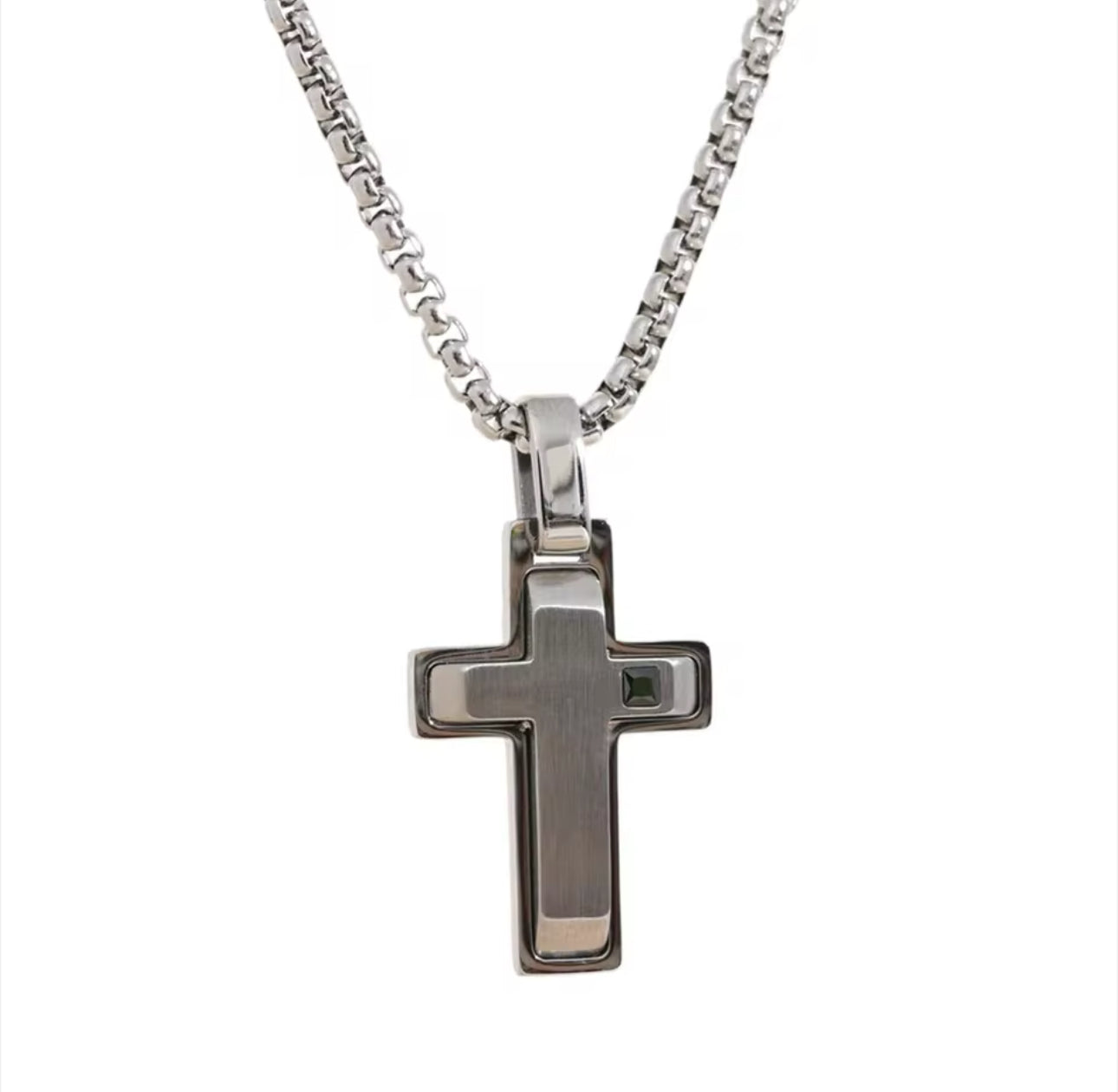 Cadena de cruz acero inoxidable con pvd oro 18k para hombre