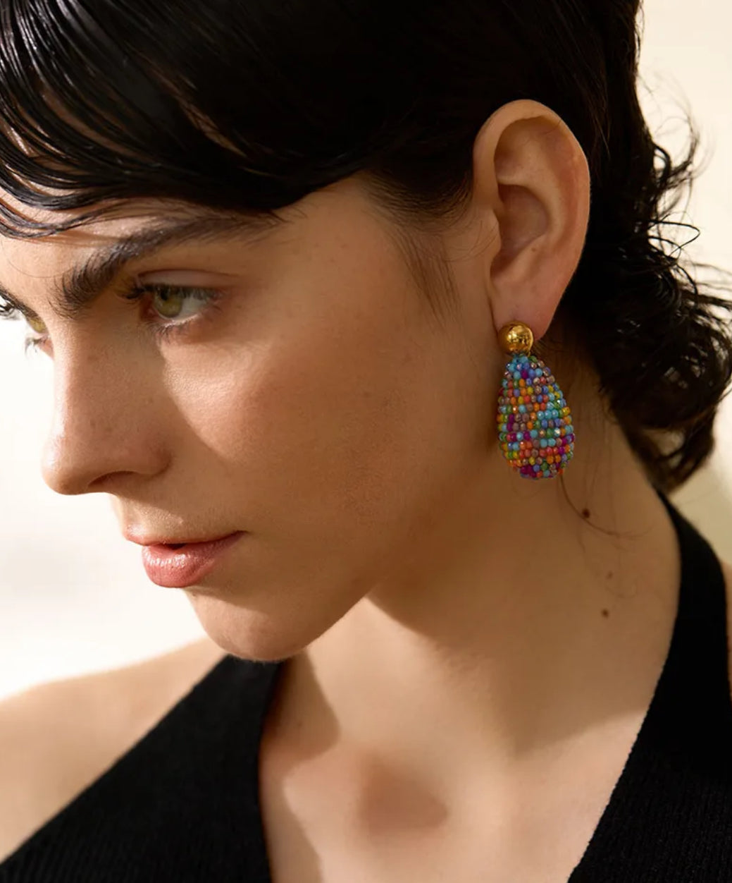 Estos aretes hechos a mano son perfectos para el verano gracias a sus cristales refrescantes y patentado de acero inoxidable. La forma de gota añade un toque elegante a cualquier outfit. Disfruta de la belleza y durabilidad de estos aretes con un estilo único.
