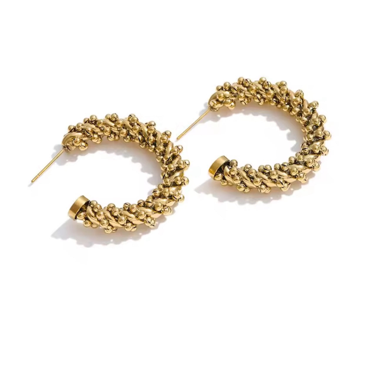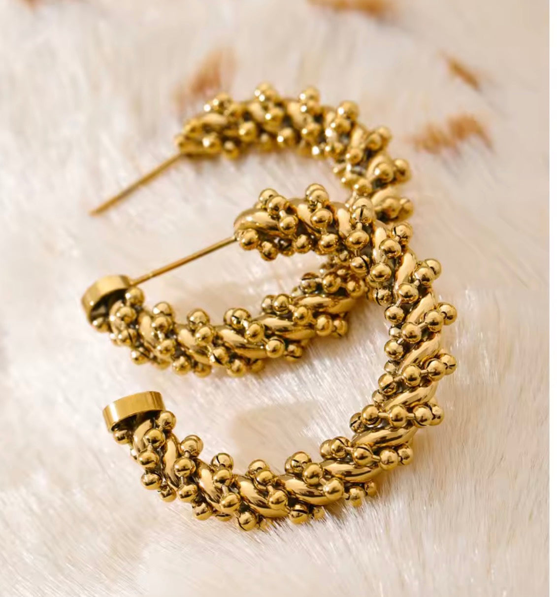 Aretes en forma de C huggies twisted beads color dorado oro 18k pvd. Para todas las ocasiones. Impermeables