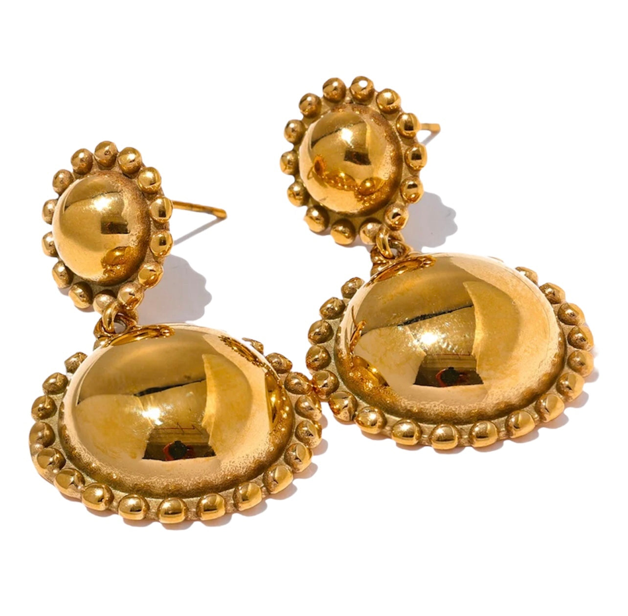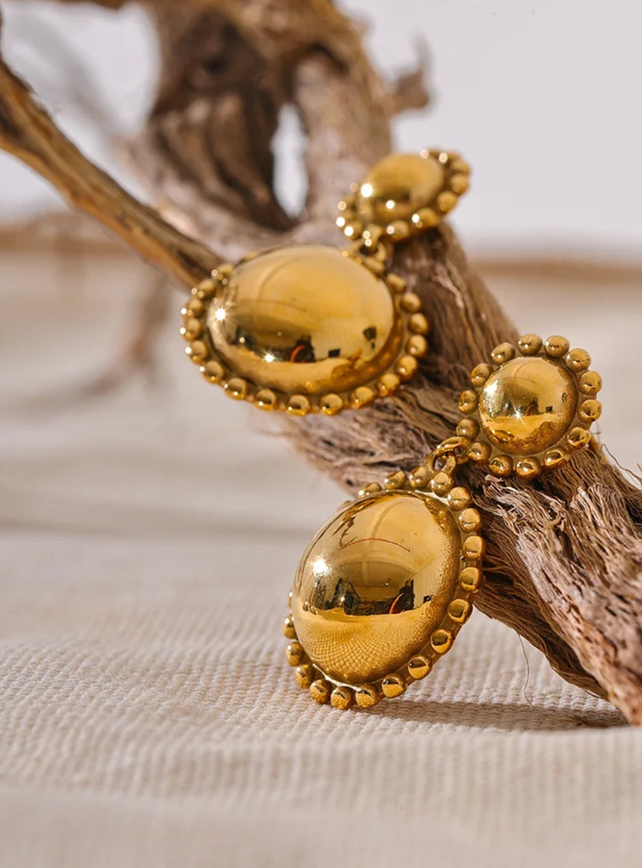 Incremente su estilo este verano con los aretes acero inoxidable pvd en oro 18k de Doble Sol. Impermeables y elegantes, son perfectos para cualquier ocasión. Mantenga su brillo bajo el sol con estos aretes duraderos y de alta calidad. ¡Añádalos a su colección de joyas hoy mismo!