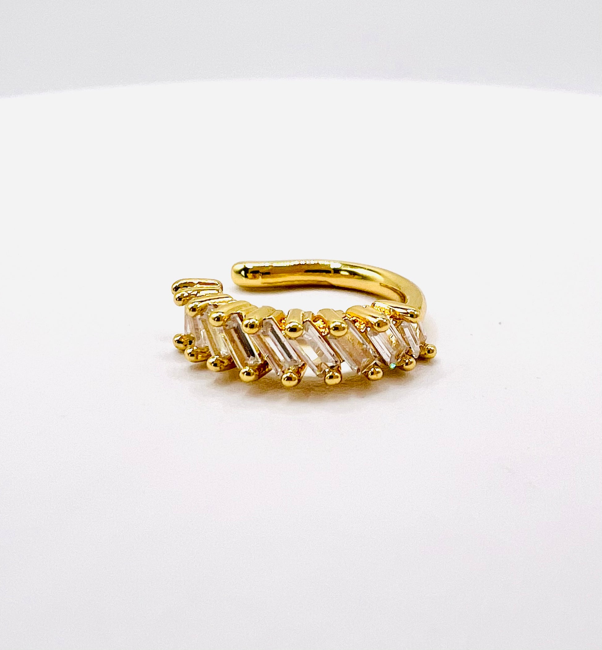 Arete de clip sin necesidad de perforación con mini cristales, baño de oro.