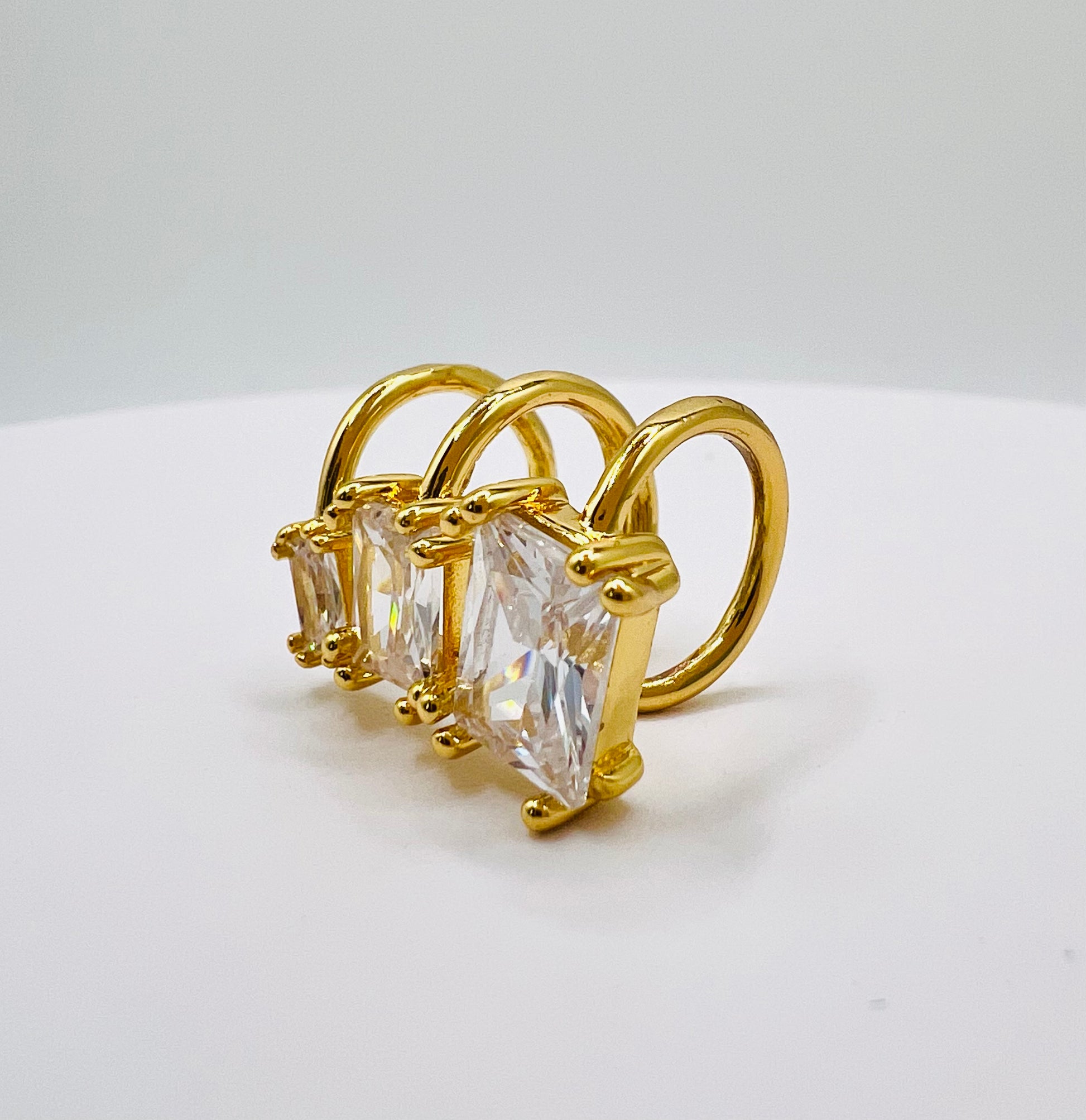 Arete sin necesidad de perforación para oreja derecha. Baño de oro. Y cristales de zirconia.