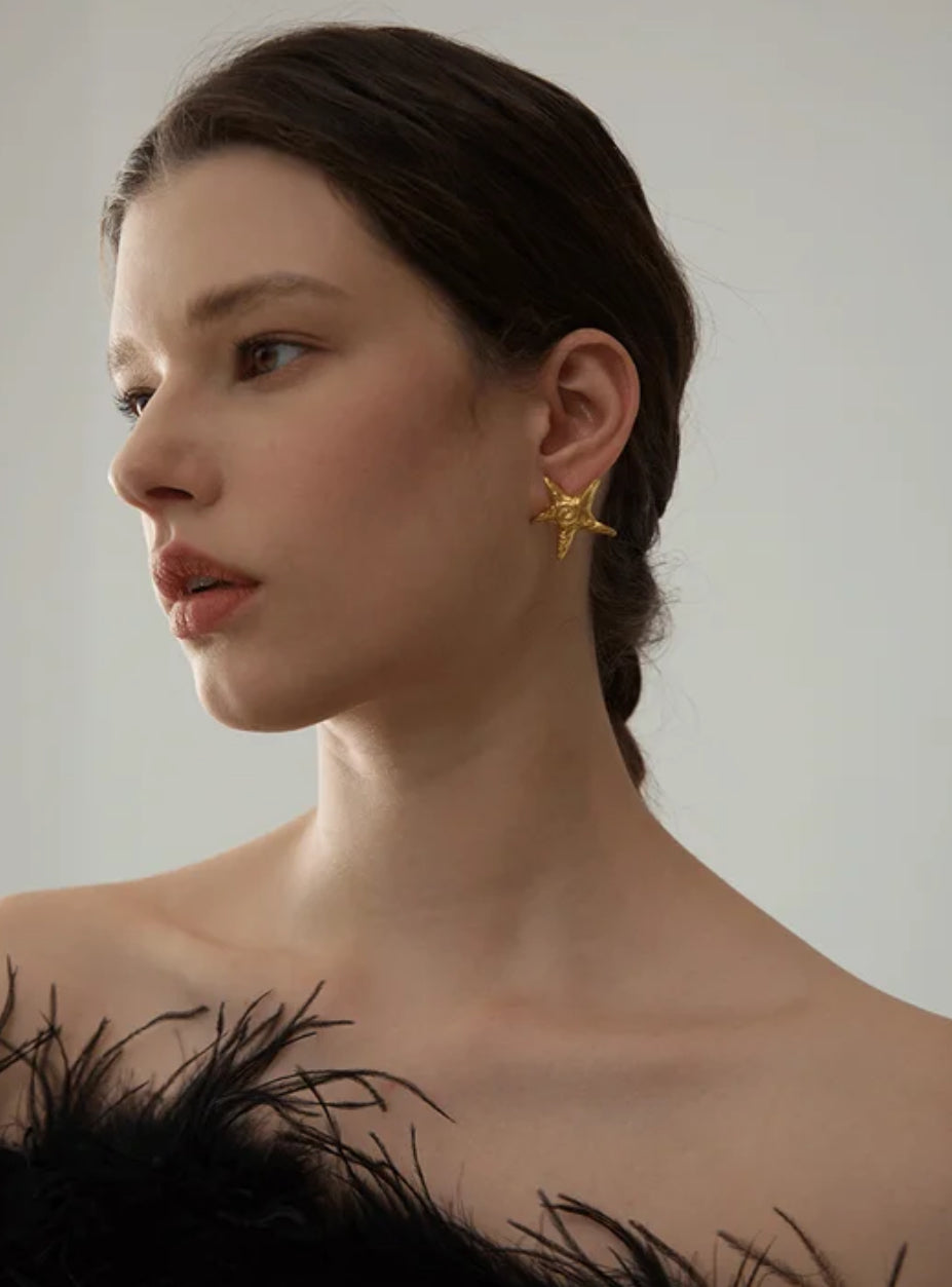 Los modernos aretes de estrella de mar Estrella de Mar 2 son perfectos para el verano. Hechos de acero inoxidable PVD 18k, son impermeables y duraderos. Su diseño único es ideal para lucir en la playa o en la ciudad.¡Consigue un look fresco y a la moda con estos aretes!