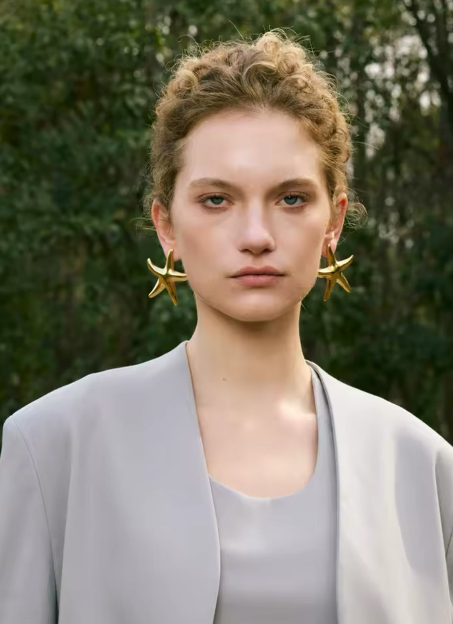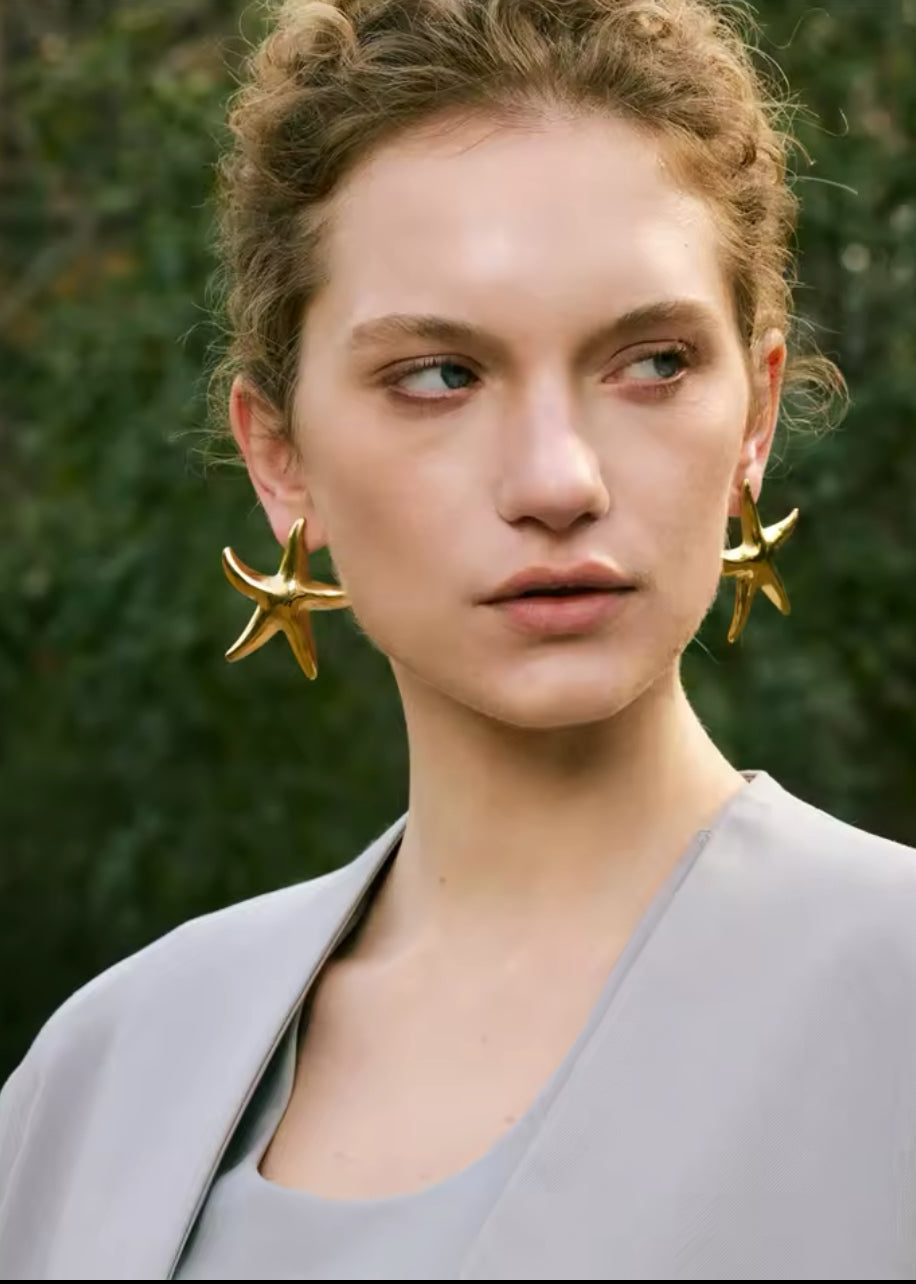 Aretes de acero inoxidable enchapados en pvd oro 18k en forma de estrella de mar gigante