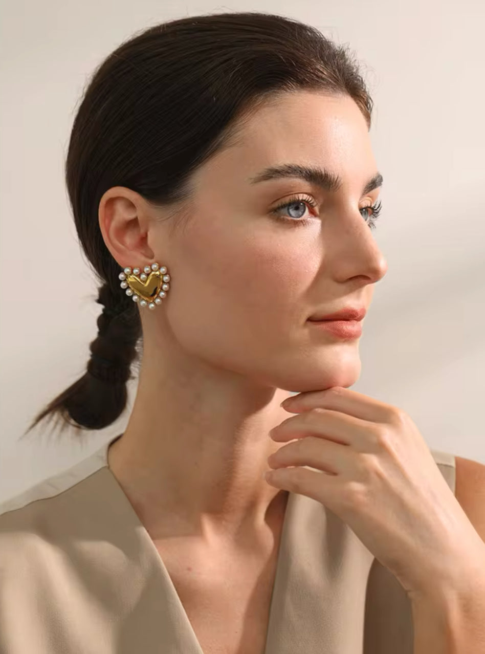 Perlas acrílicas aretes en forma de corazón acero inoxidable pvd 18k oro lujo impermeables hipoalergénicos