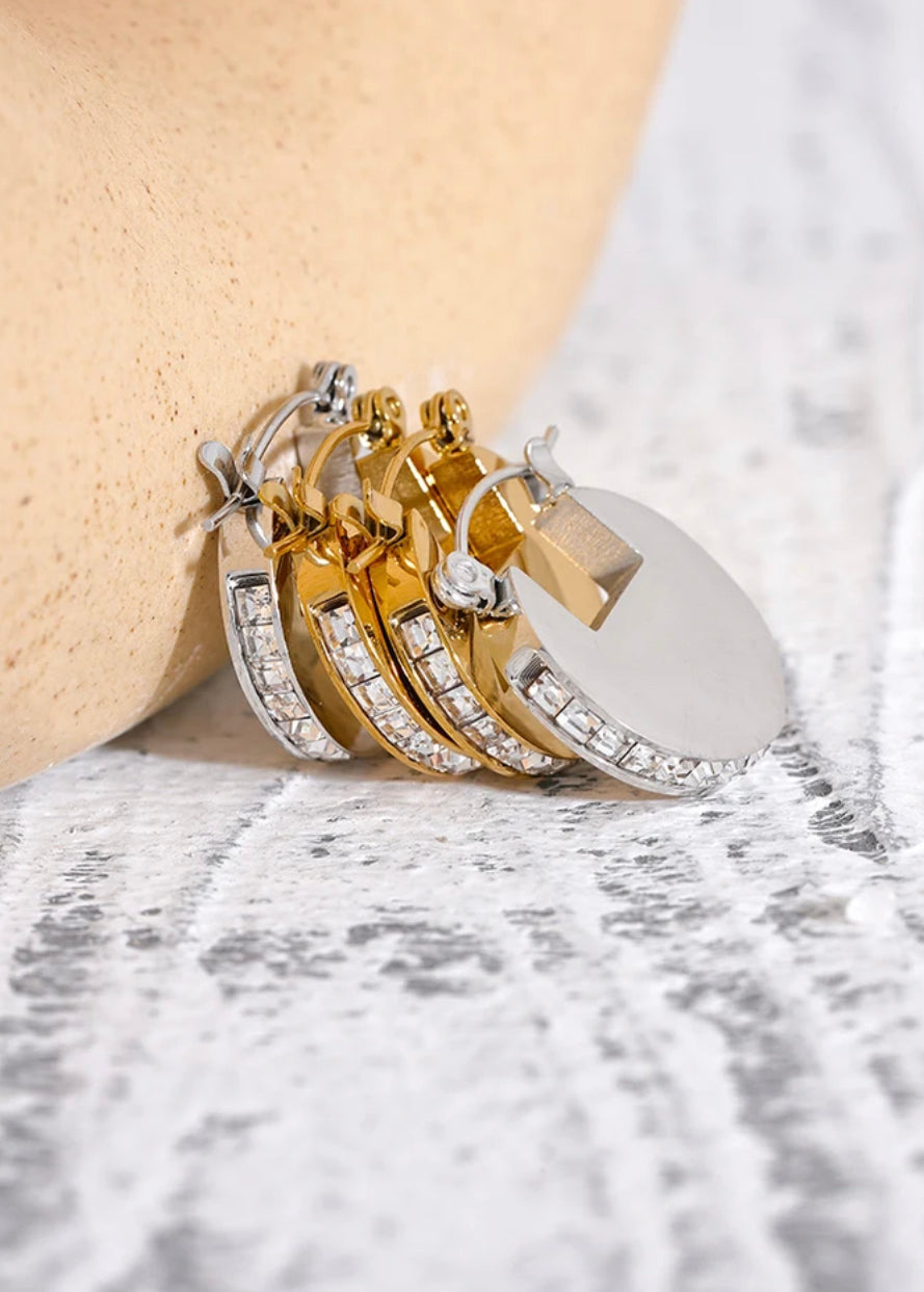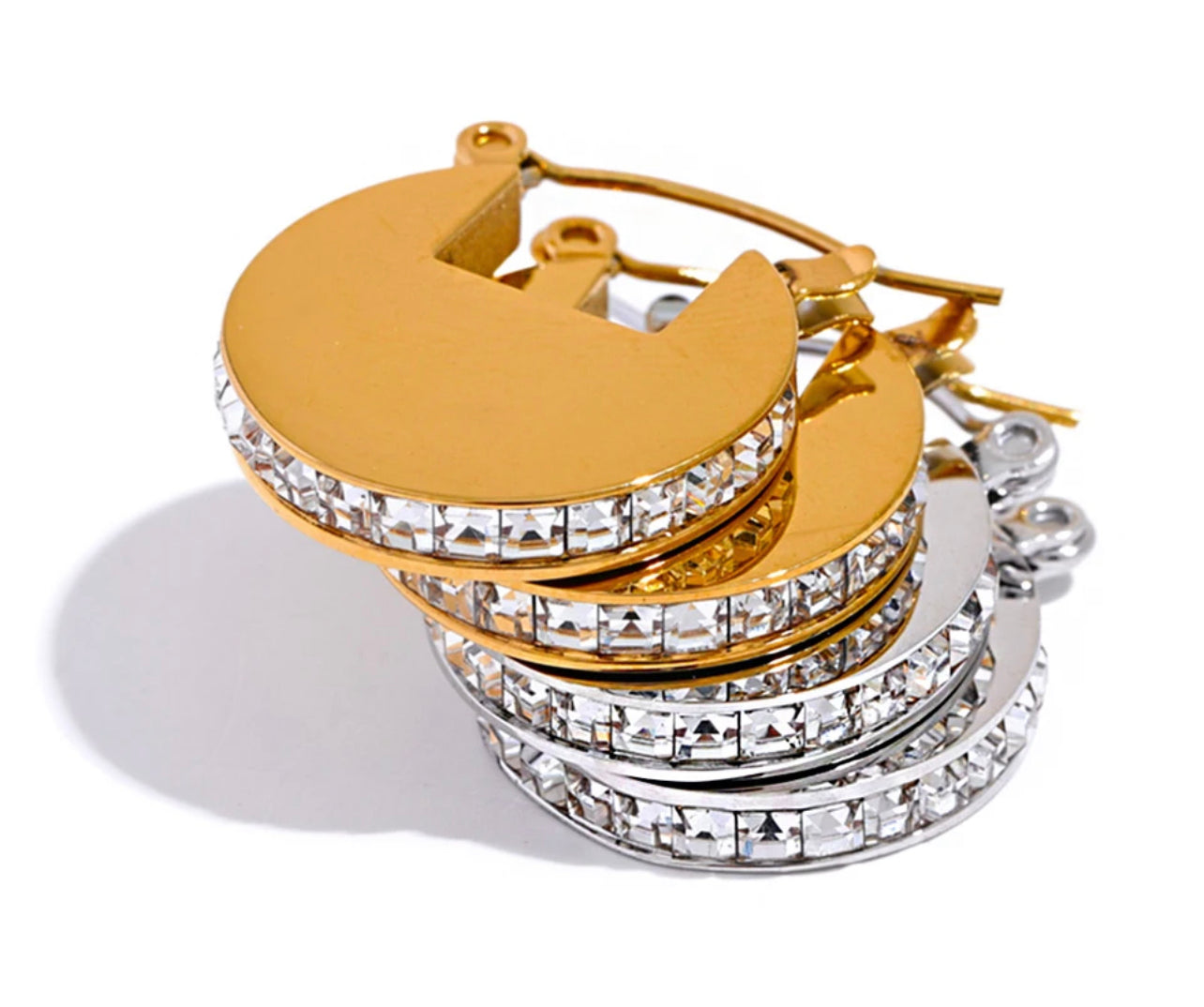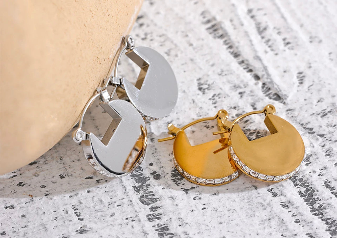 Aretes de acero inoxidable enchapados en oro real de 18k, impermeables e hipoalergénicos.