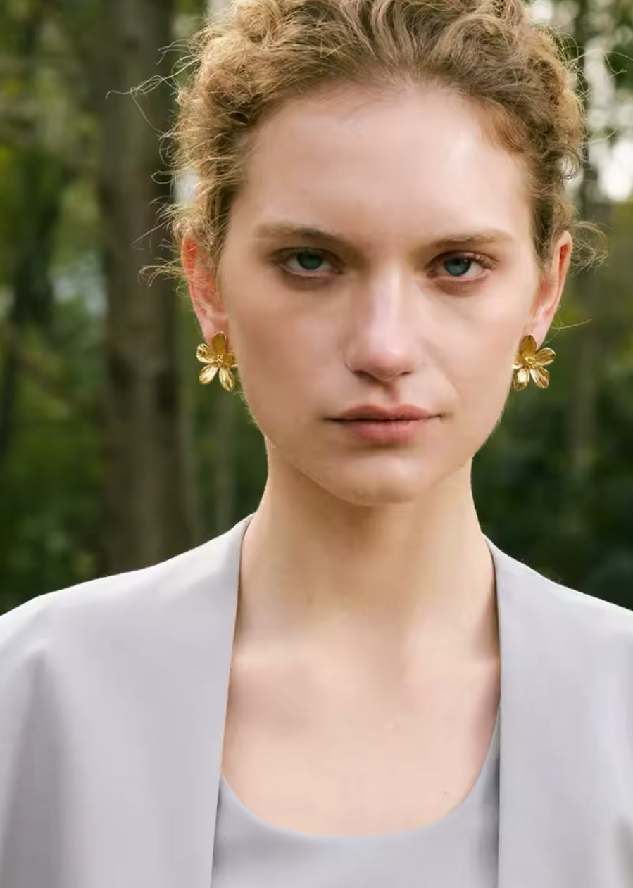 Aretes de acero inoxidable enchapado en pvd oro 18k en forma de flor casual para uso diario