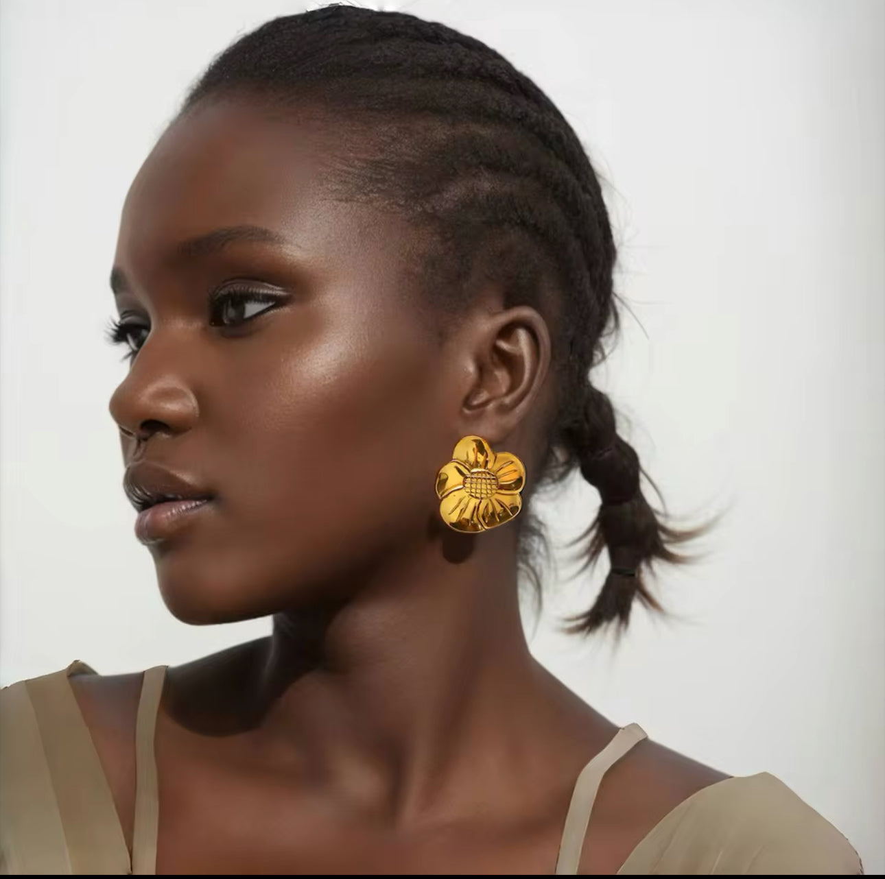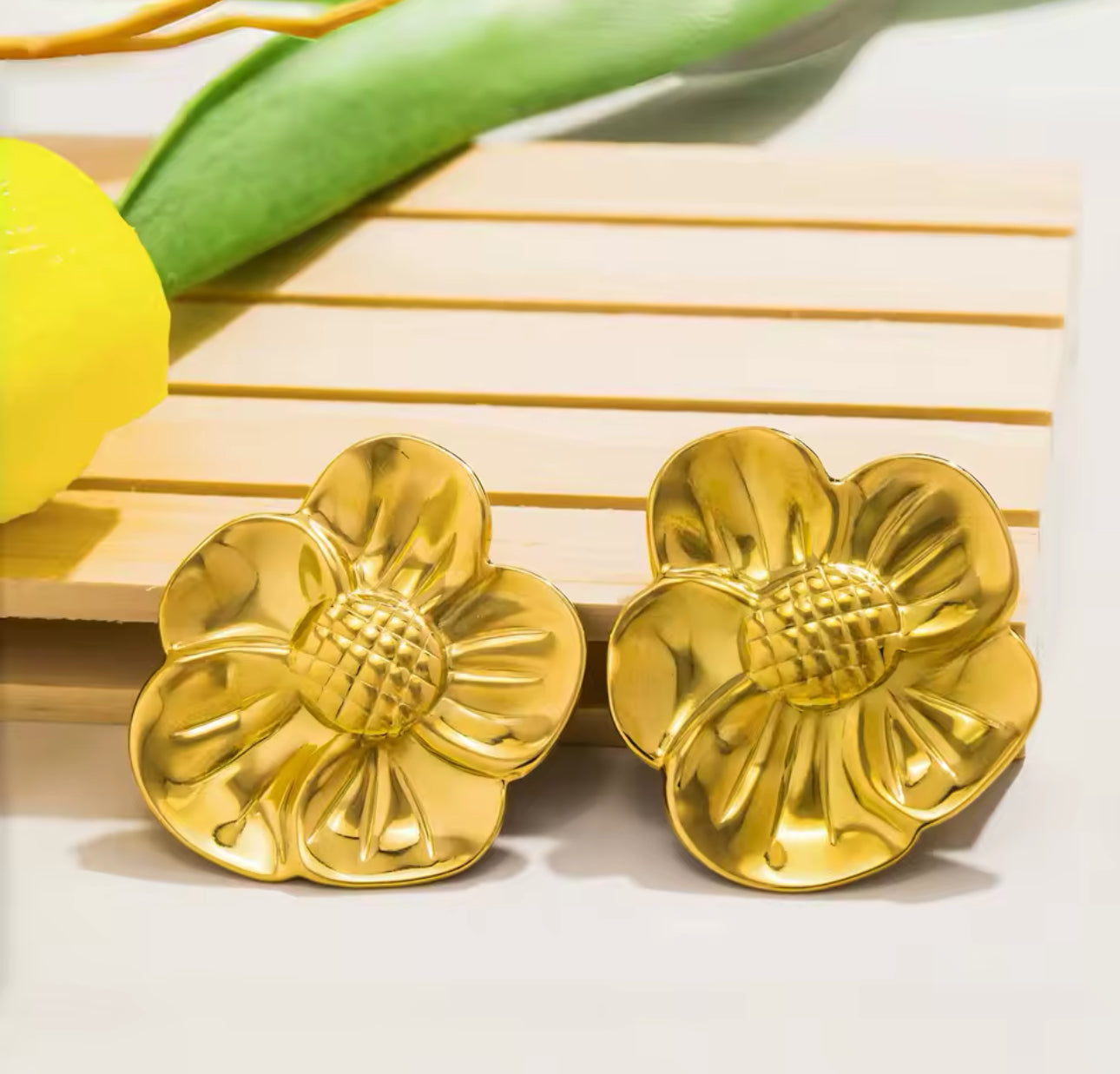 La flor mediana es una pieza de joyería exquisitamente diseñada con acero inoxidable PVD de oro 18k, que le da un toque elegante y duradero. Su forma exagerada de flor le da un aspecto único y hermoso, perfecto para cualquier ocasión. Agrega un toque de belleza a tu atuendo con esta pieza de alta calidad.