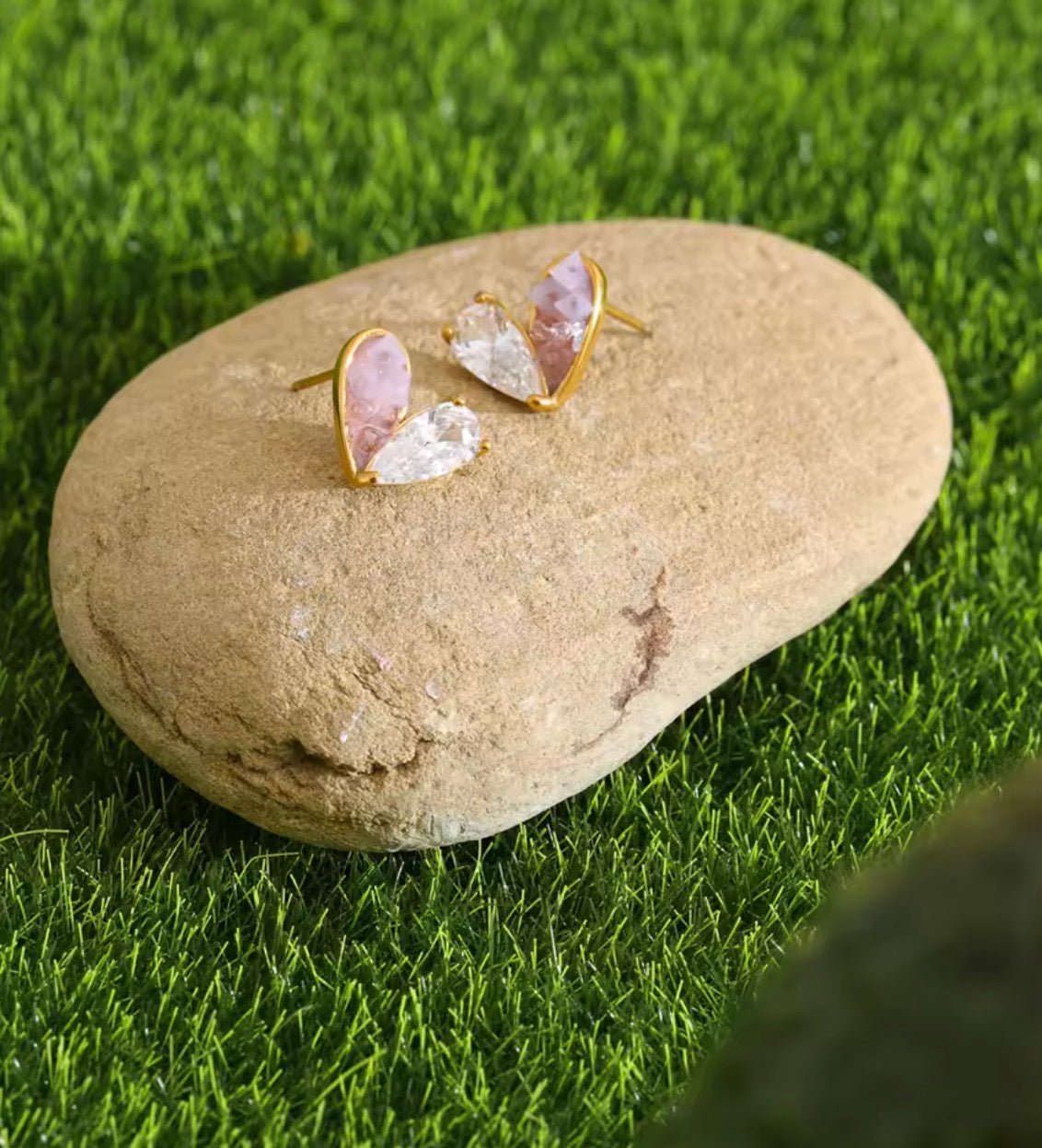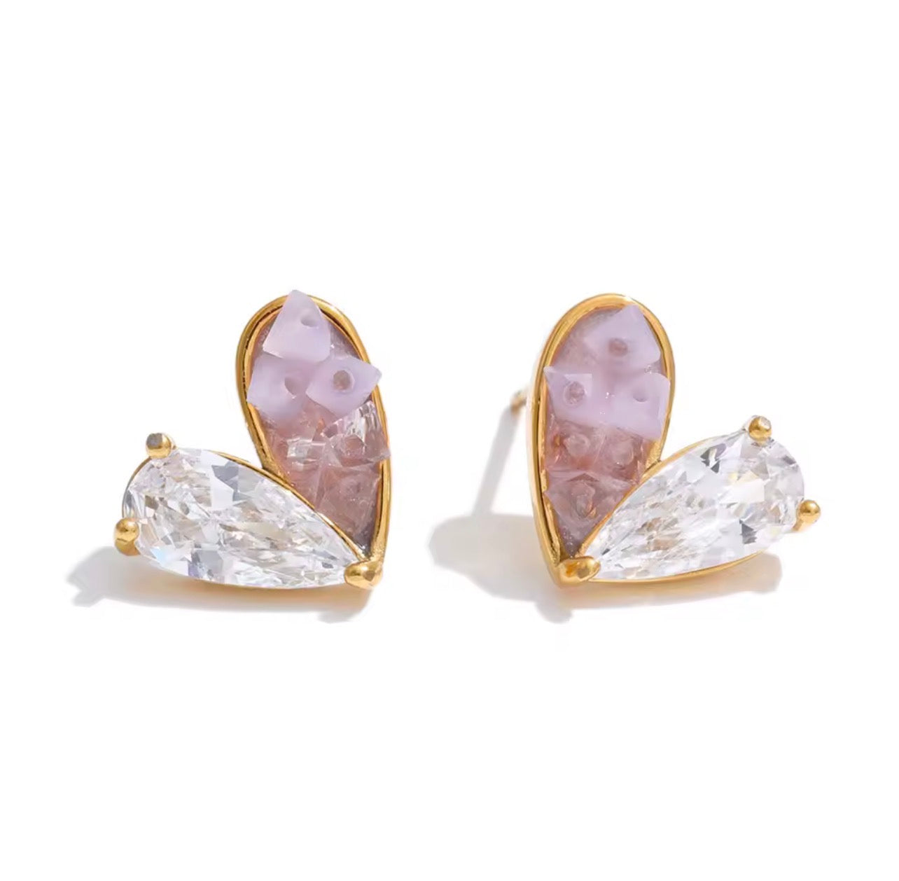 Pendientes pequeños de corazón de circonia y resina rosada de acero inoxidable enchapados en oro de 18kpvd