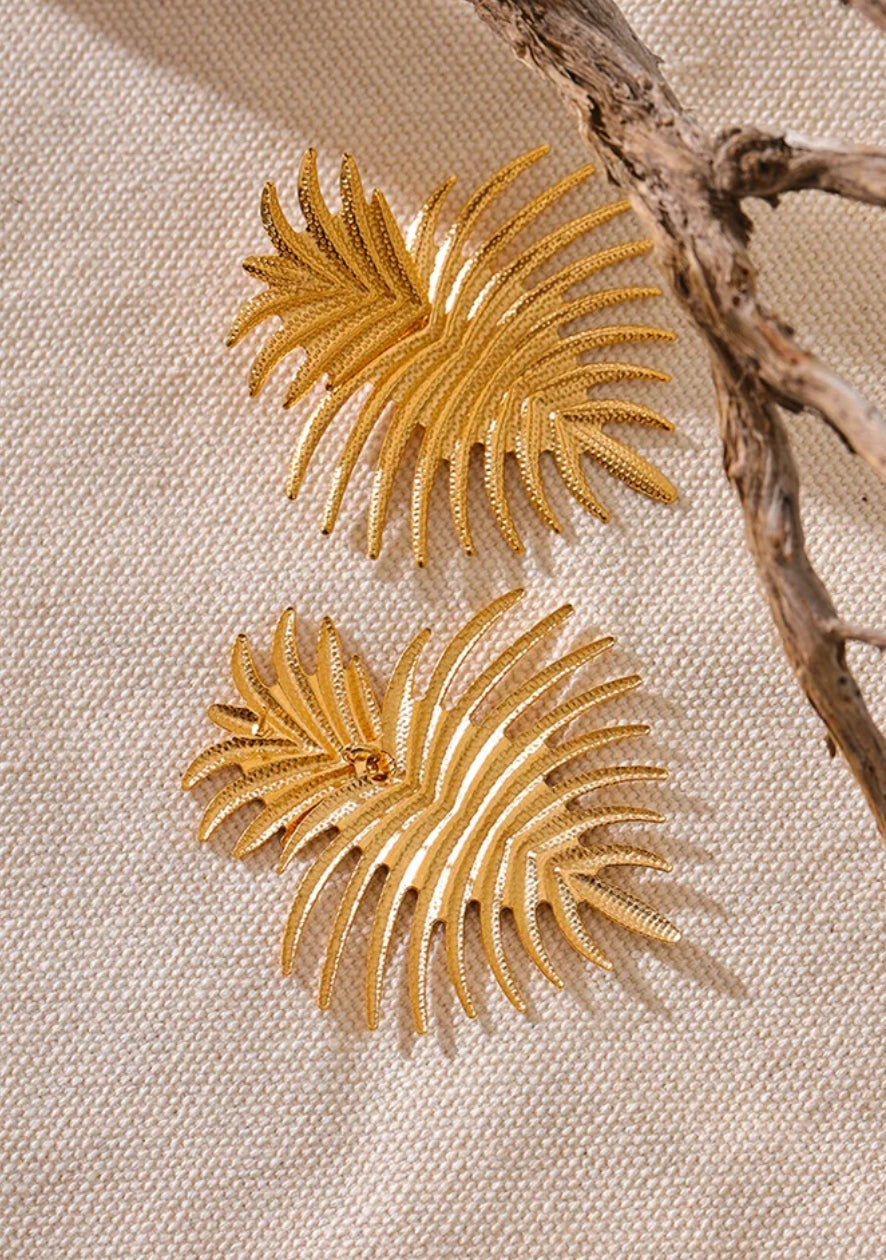 Los aretes de Hoja Palma son una excelente opción para complementar tu look este verano. Están hechos de acero inoxidable con un acabado en oro de 18k, lo que los hace resistentes y de alta calidad. Su diseño en forma de hoja de palma es perfecto para dar un toque de elegancia y frescura a cualquier atuendo. ¡Luce increíble con estos aretes únicos y versátiles!