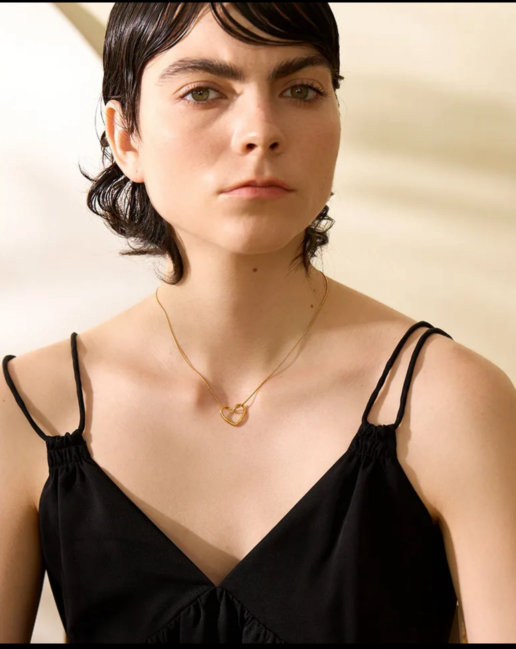 Cadena con colgante hueco en forma de corazón de acero inoxidable dorado minimalista, joyería elegante a prueba de óxido, enchapado en 18k.