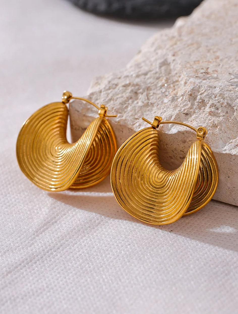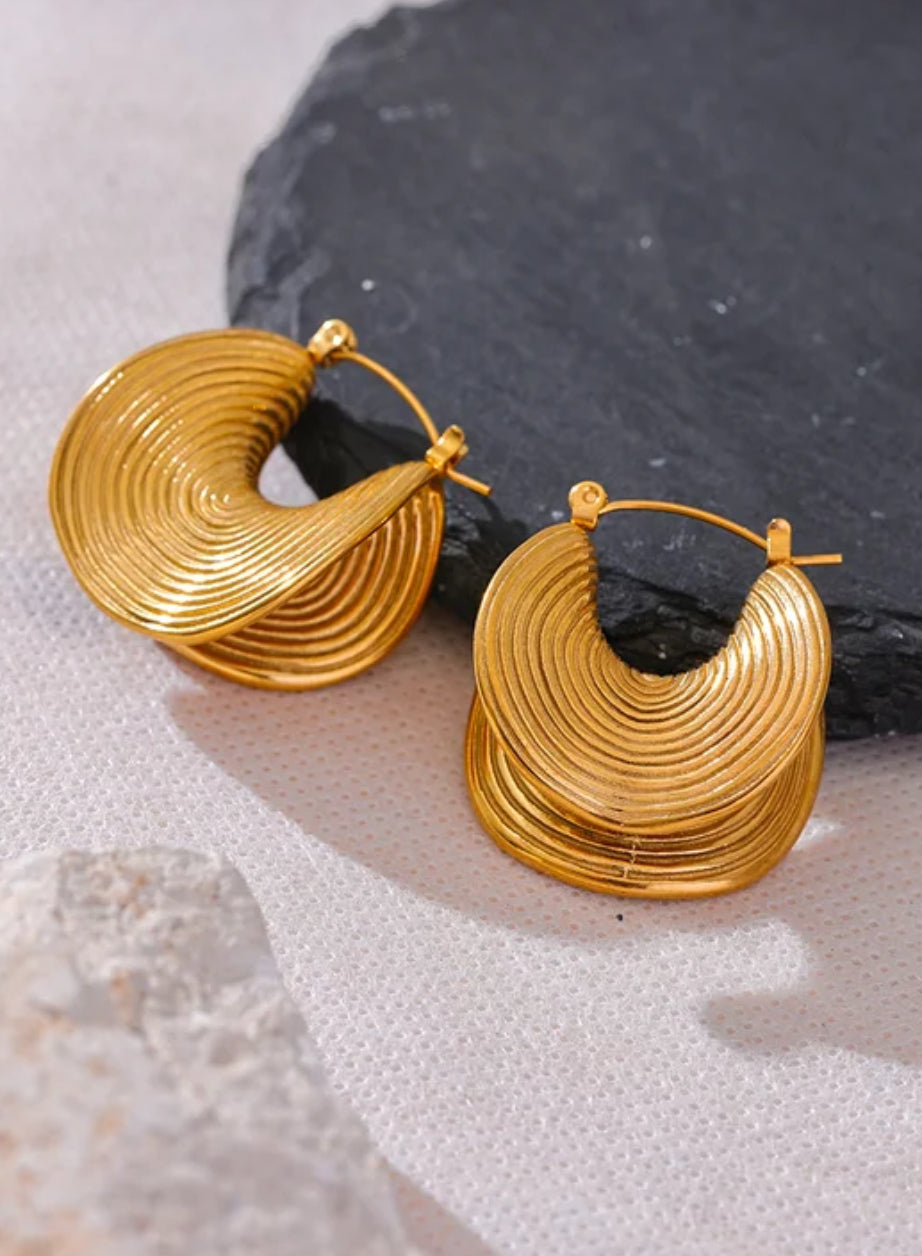 Descubre la elegancia de los aretes en forma de silla de caballo hechos de acero inoxidable pvd 18k. Son impermeables e hipoalergénicos, perfectos para usar este verano sin preocupaciones. Disfruta de su belleza y calidad sin igual.