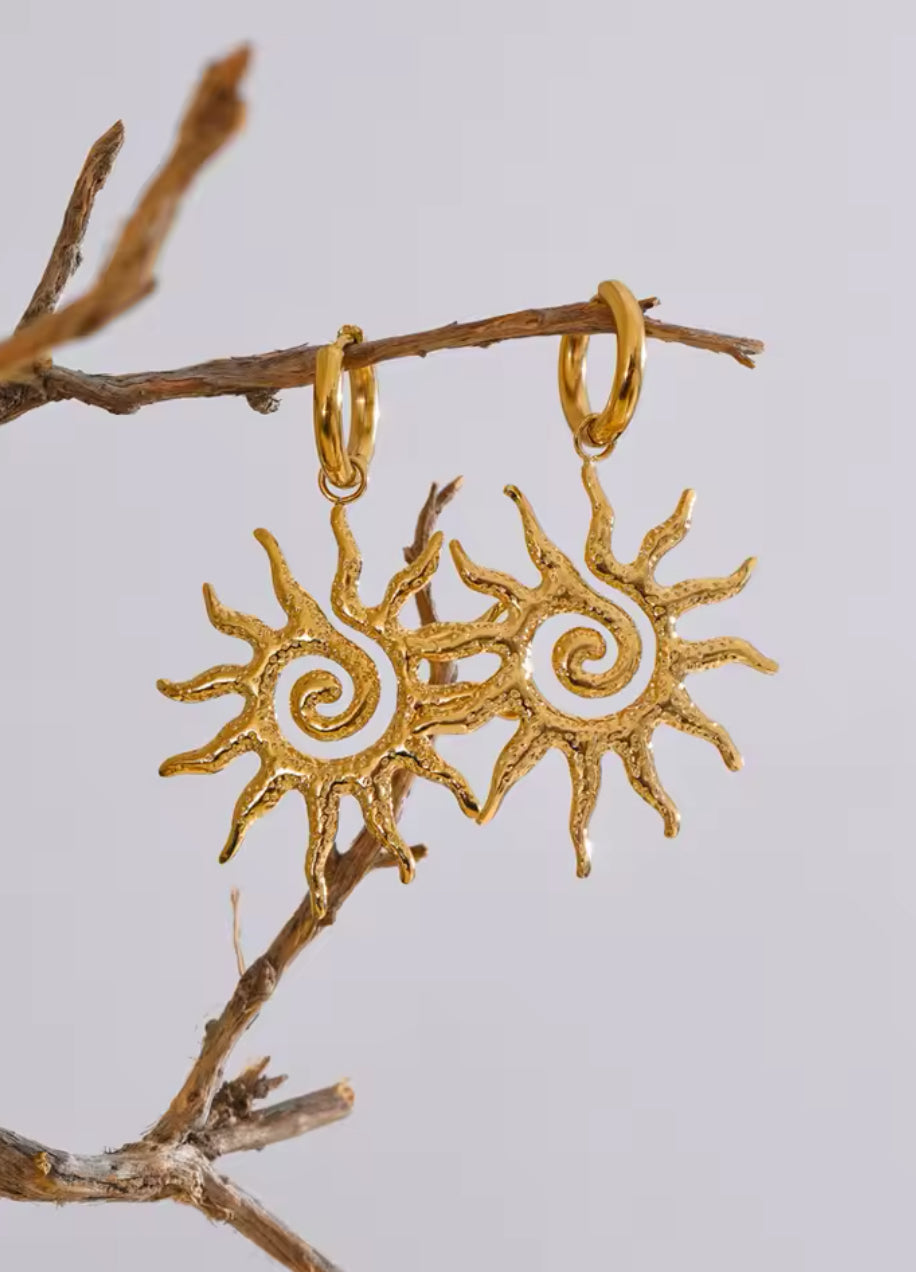 Huggies Aretes de acero inoxidable enchapados en pvd oro 18k en forma de sol