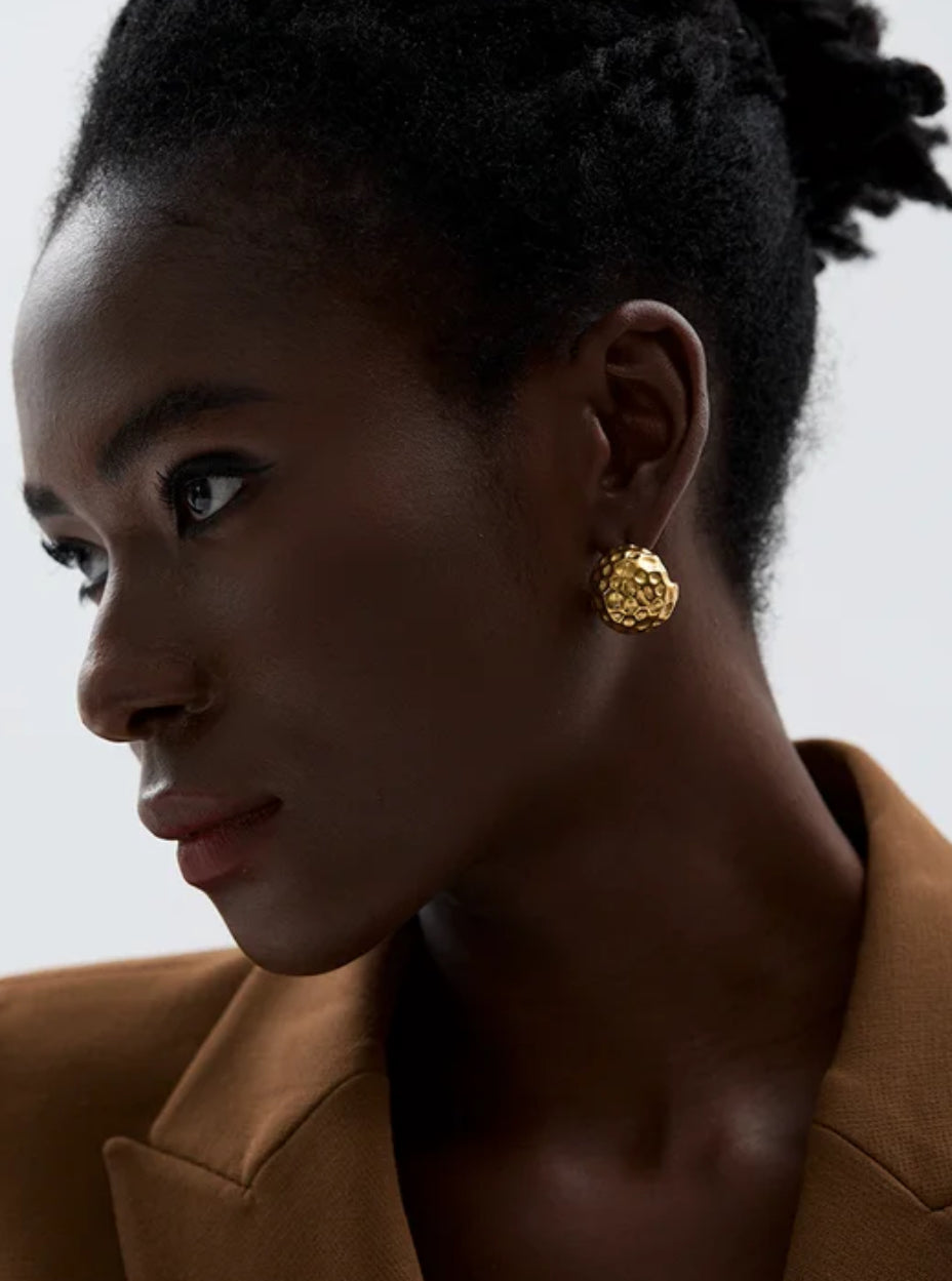 pendientes redondos de acero inoxidable para mujer, aretes Vintage a prueba de óxido, textura de Metal chapada en 18K, joyería atractiva con dijes de moda