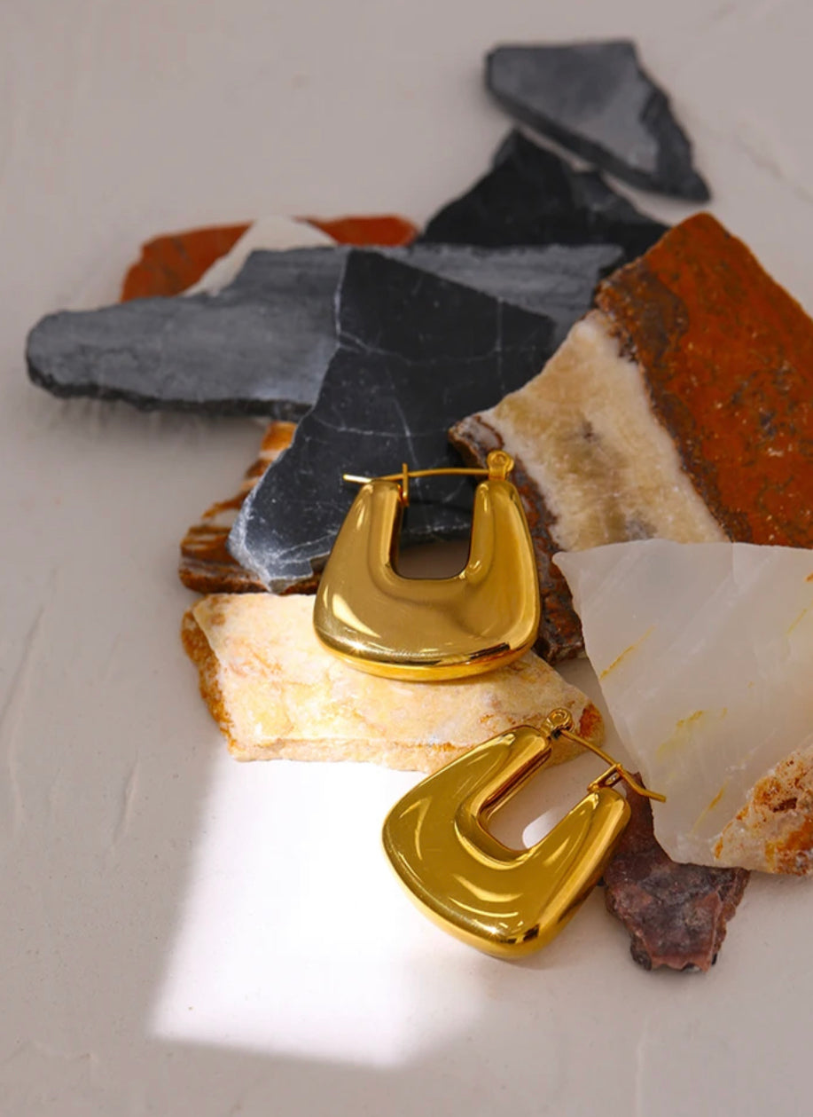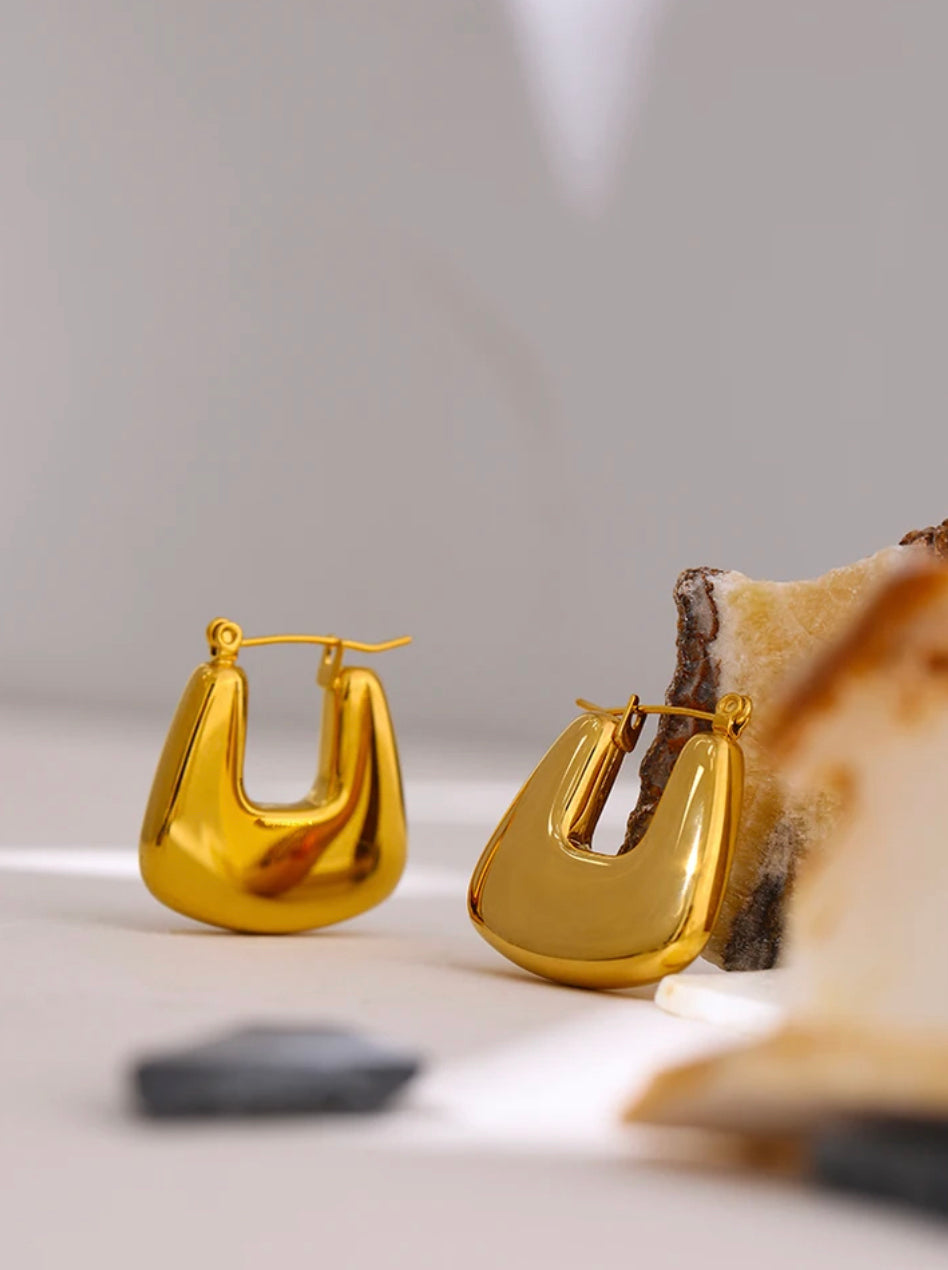 Aretes de acero inoxidable enchapados en oro real de 18k, impermeables e hipoalergénicos.