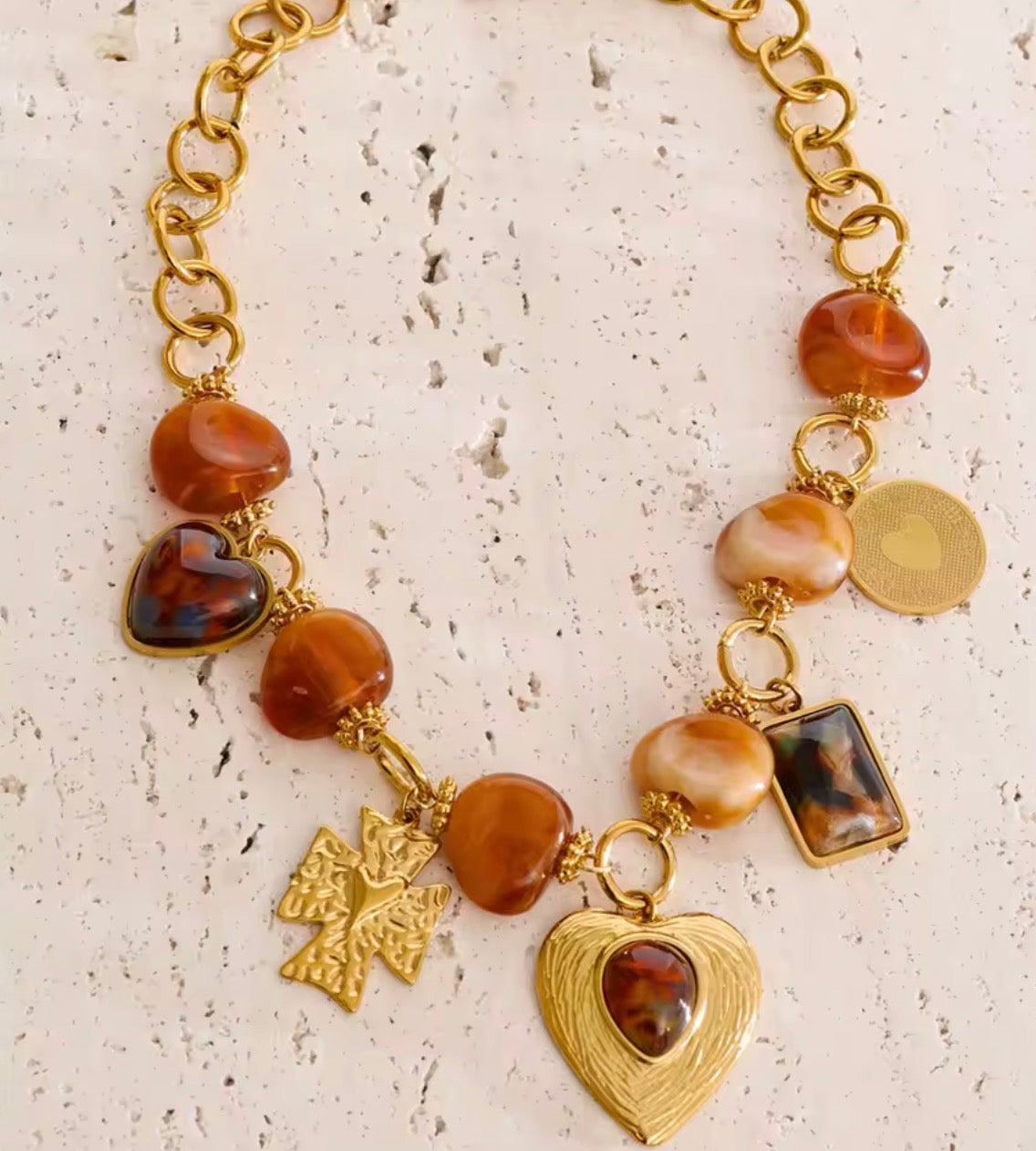 Collar de resina acrílica con forma de gota de amor, joyería moderna de acero inoxidable resistente al deslustre.
