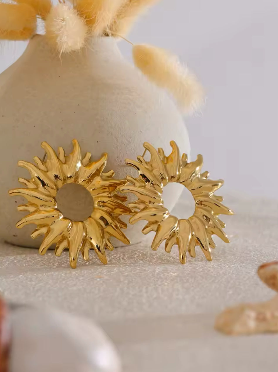 Aretes de acero inoxidable en forma de sol con oro PVD 18k