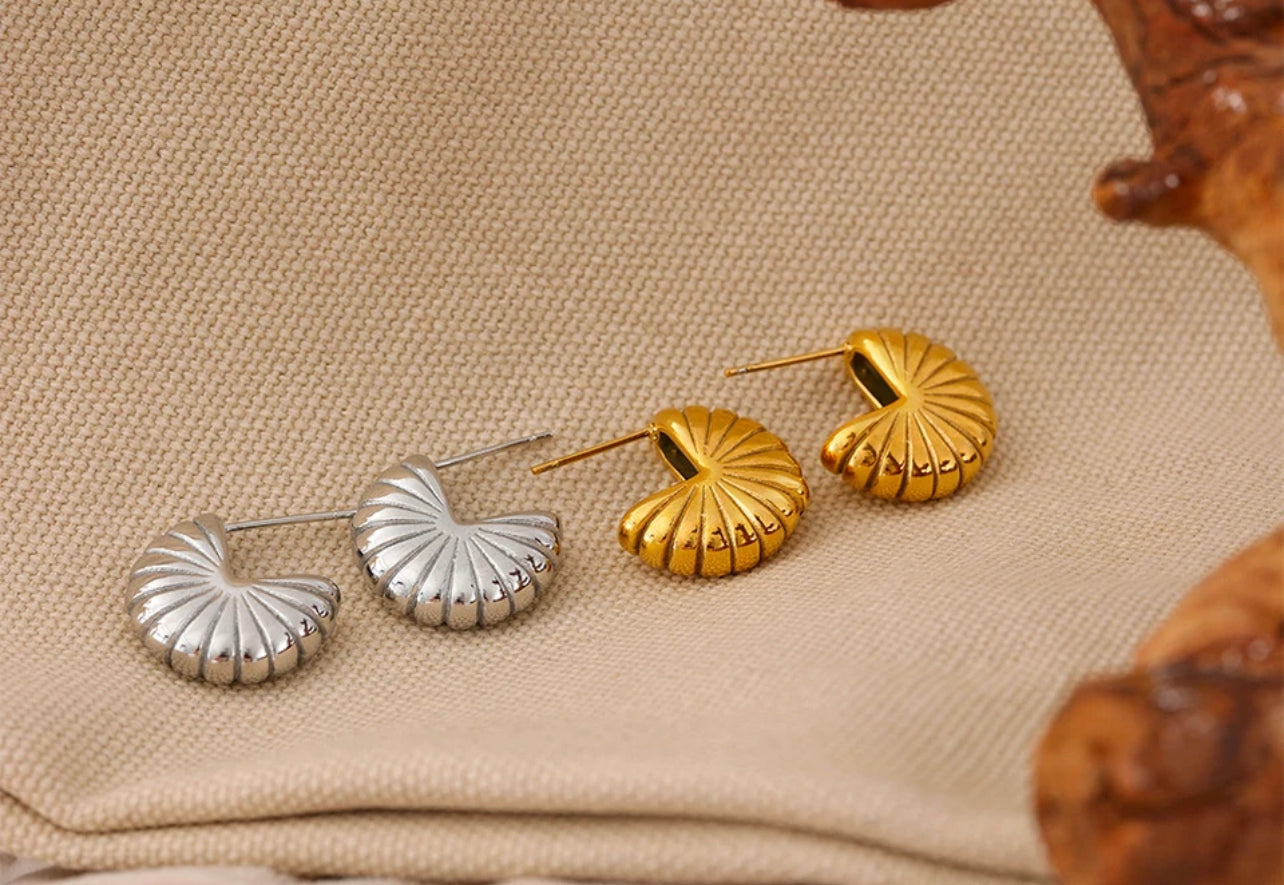 Aretes de acero inoxidable enchapado en oro real de 18k impermeables e hipoalergénicos.