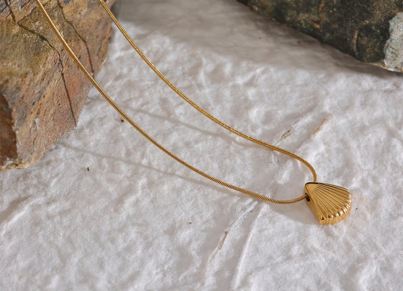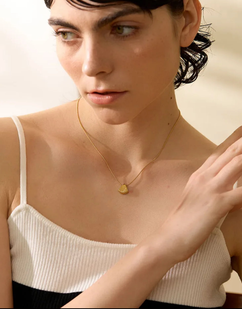 Este conjunto de aretes y cadena de pequeñas conchas de mar de acero inoxidable enchapadas en oro de 18k son perfectas para complementar tus looks este verano. Impermeables y duraderas, podrás lucir un estilo elegante y marítimo con un toque de brillo. ¡Disfruta del verano con estilo y calidad!