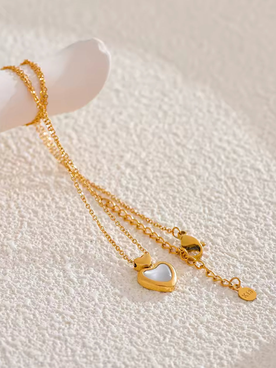 Cadena de corazón de concha natural acero inoxidable con pvd oro 18k