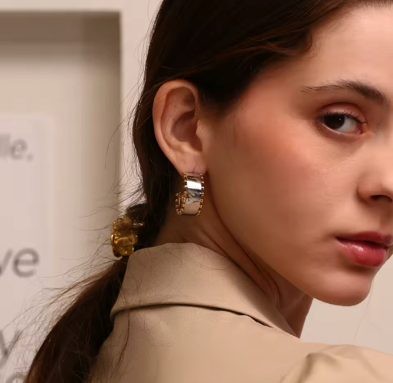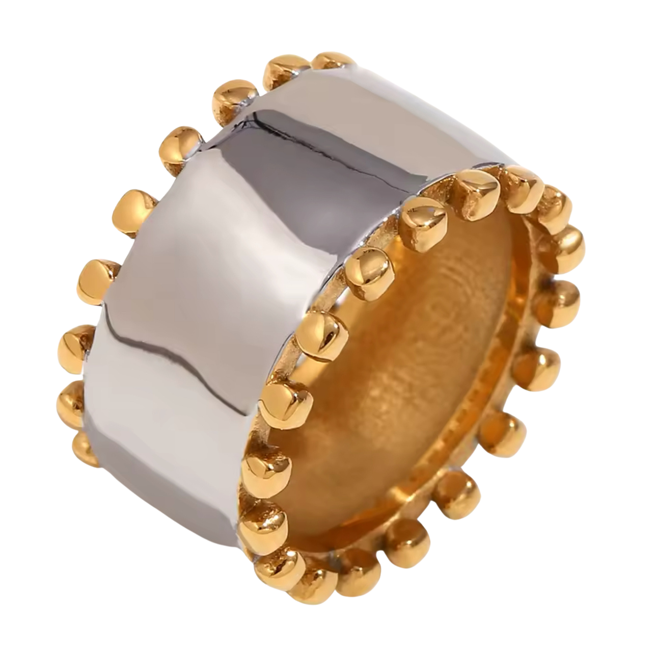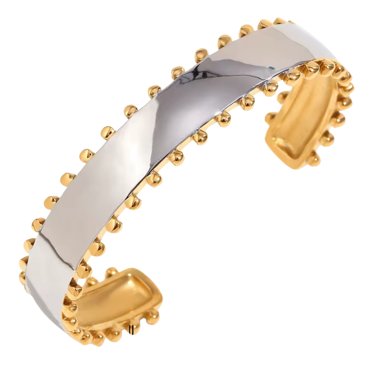 Conjunto de aretes, anillo y brazalete de acero inoxidable 316L enchapado en oro 18K en combinación dorado y plateado en tendencia