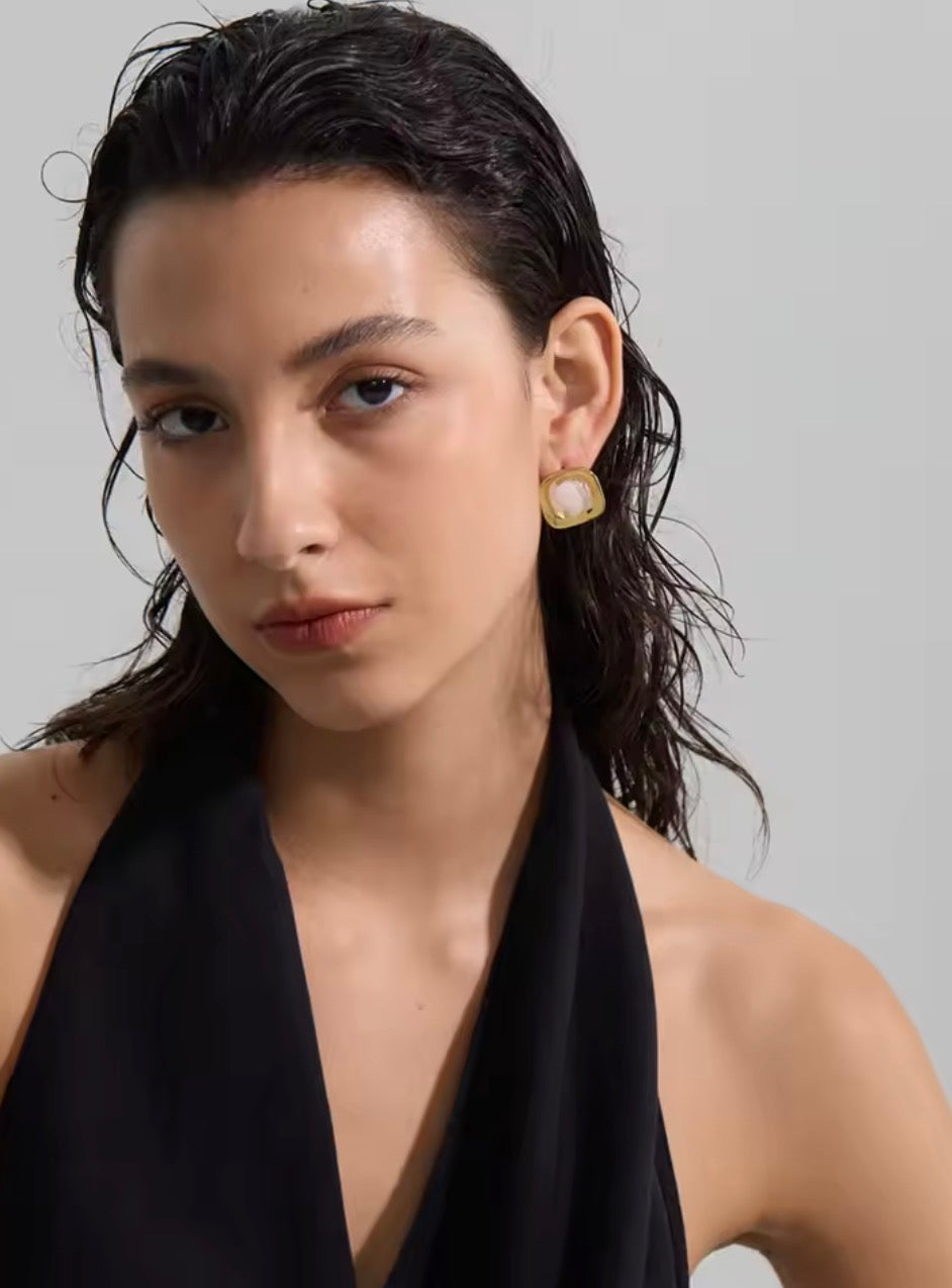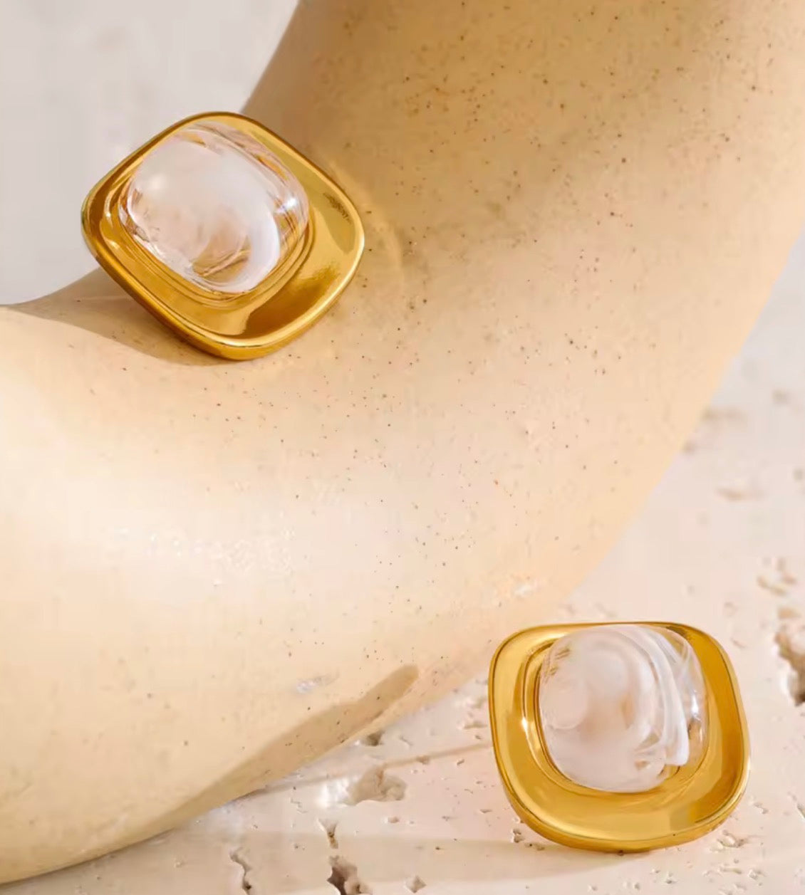 Aretes cuadrados de Resina blanca de acero inoxidable 316L enchapados en oro pvd18k