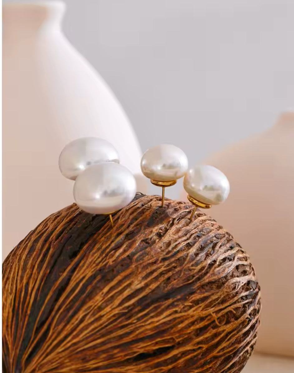 Aretes de acero inoxidable con perlas sintéticas de alta calidad con PVD oro 18k