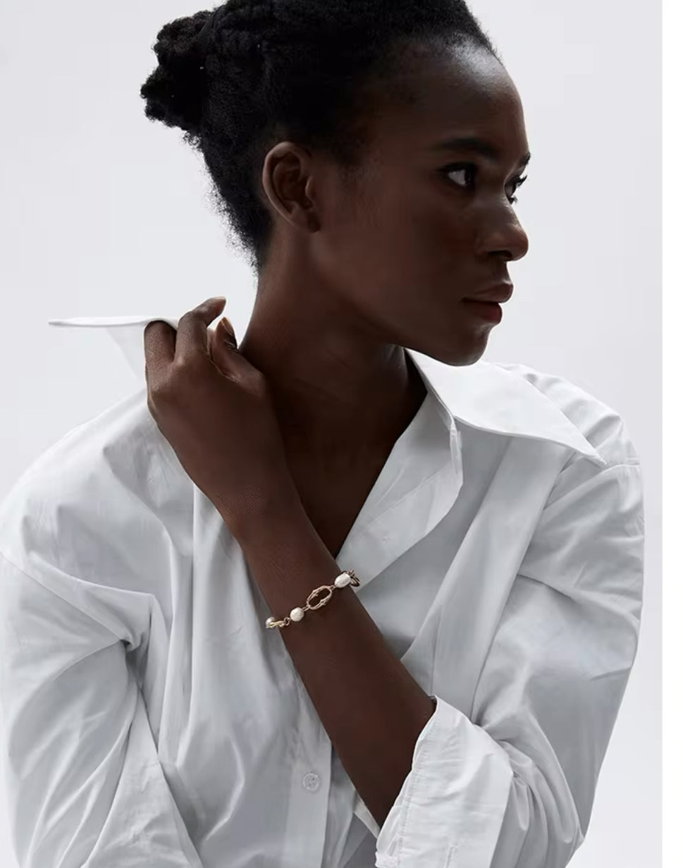 Acero inoxidable PVD 18k y perlas naturales conjunto de pulsera y collar