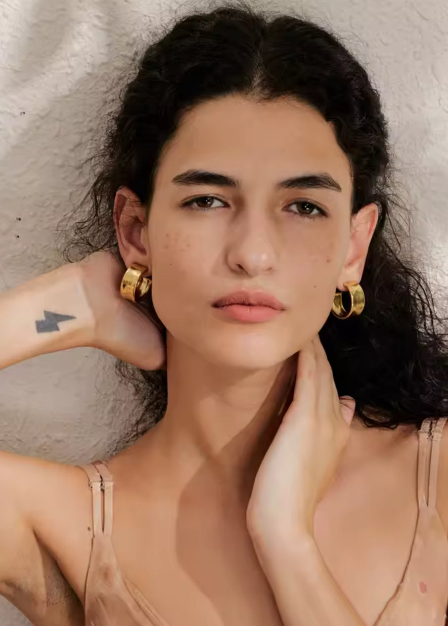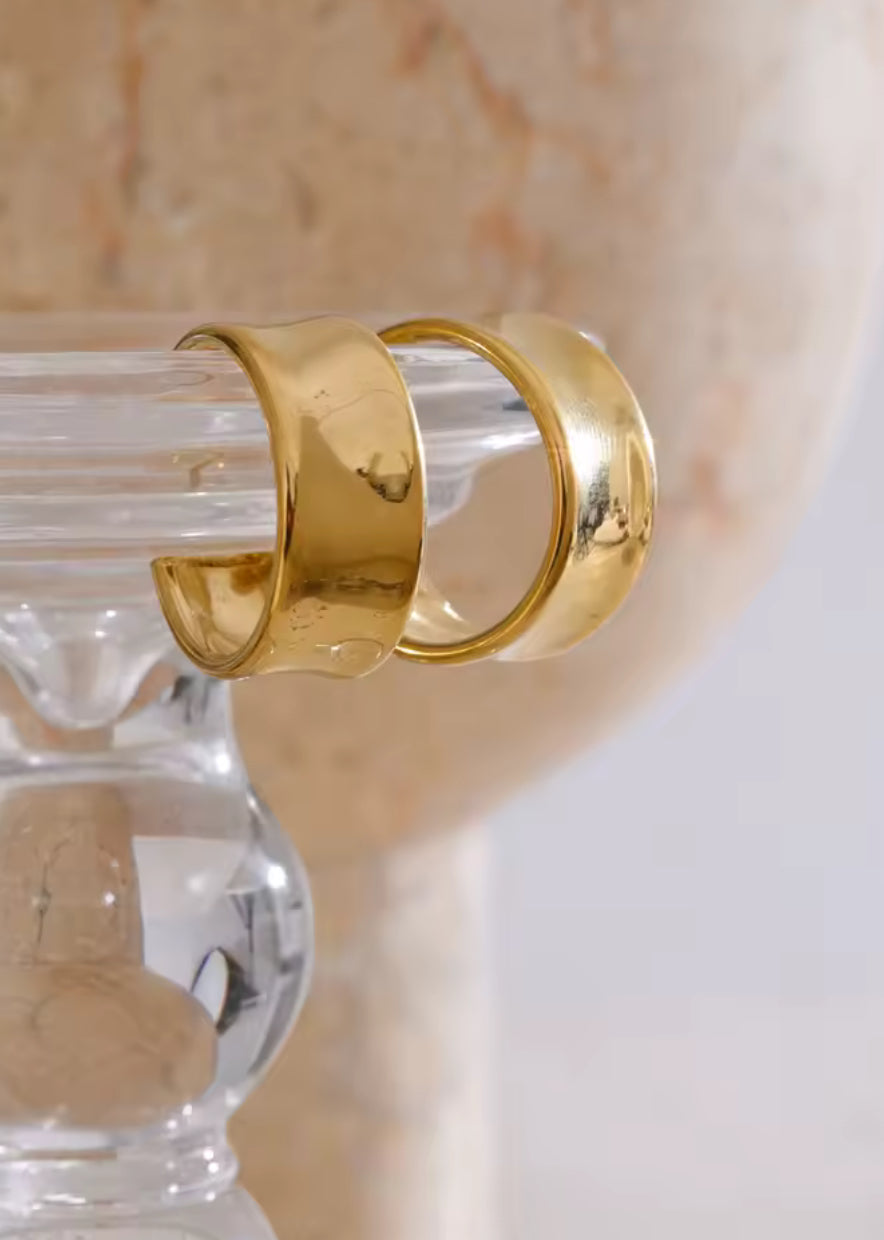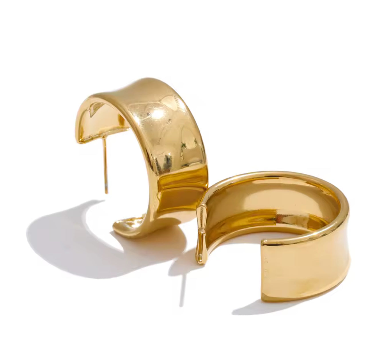 Aretes en forma de C plano de acero inoxidable enchapado en oro de 18k