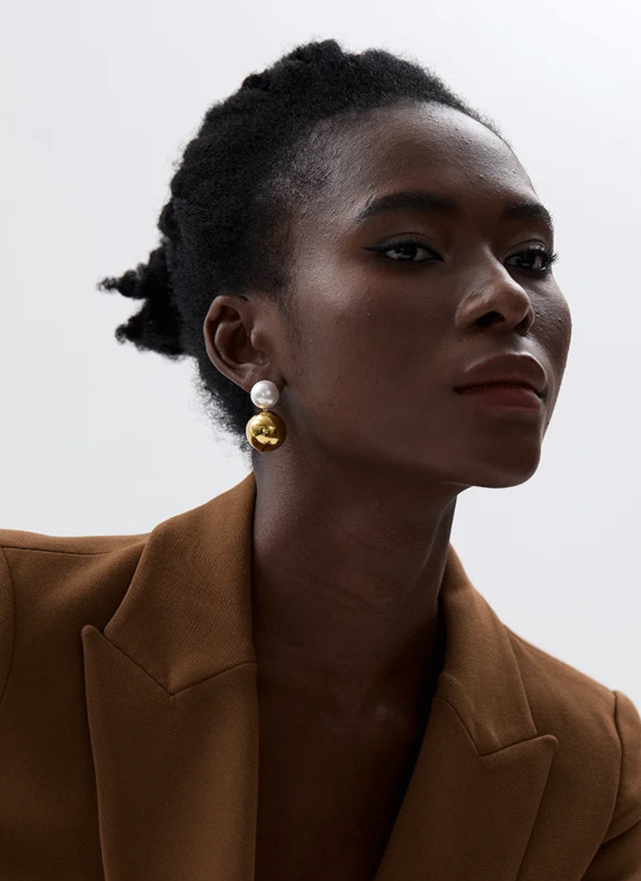 Pendientes de perlas acrílicas de alta calidad en patente redonda de acero inoxidable, enchapada en oro de 18k, impermeables, de 20mm bola grande, abalorio de Metal de temperamento, regalo de joyería elegante