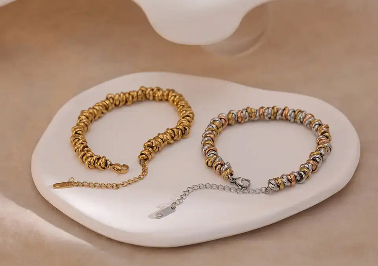 Pulsera de acero inoxidable enchapada en oro de 18k, impermeable.