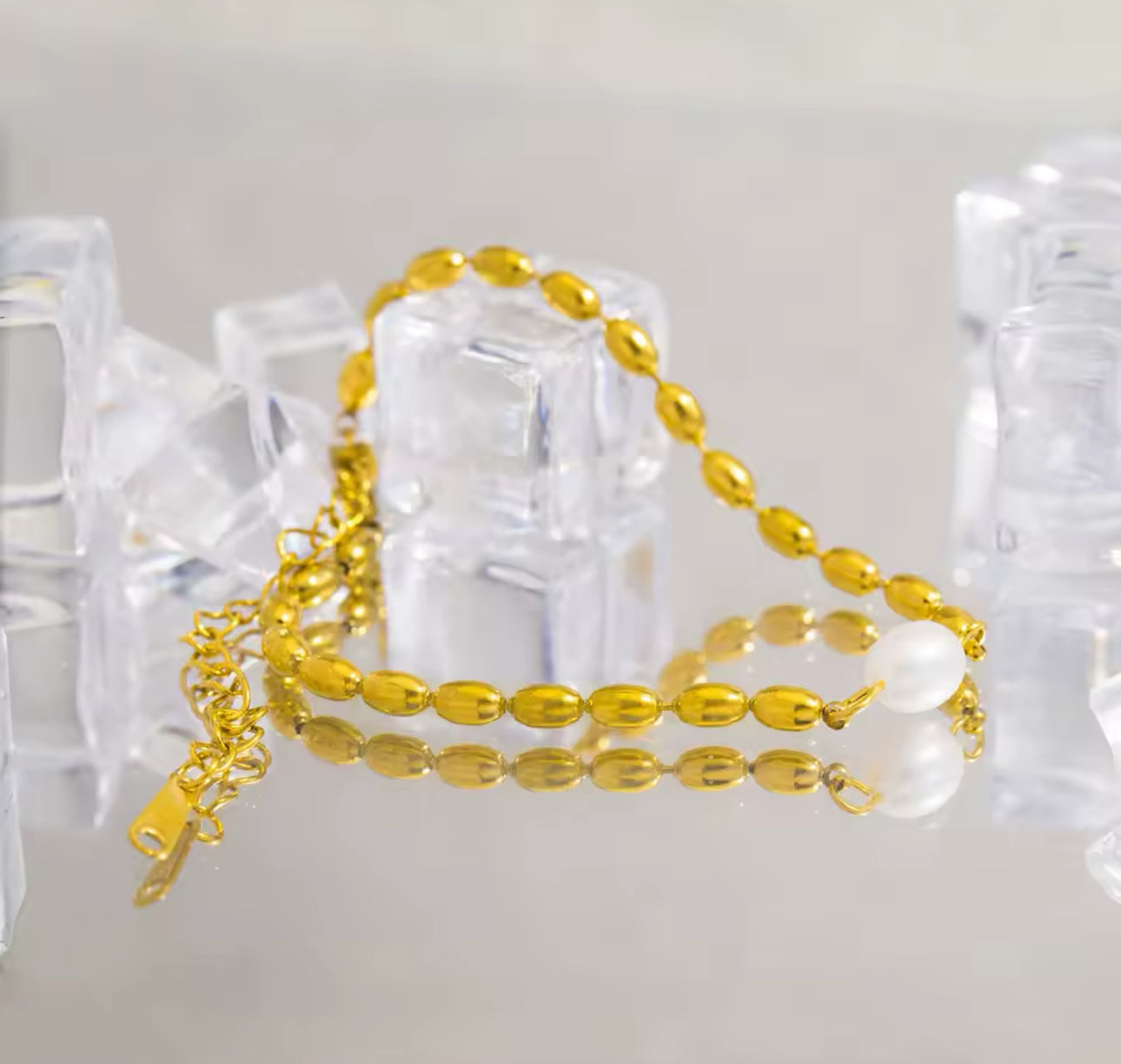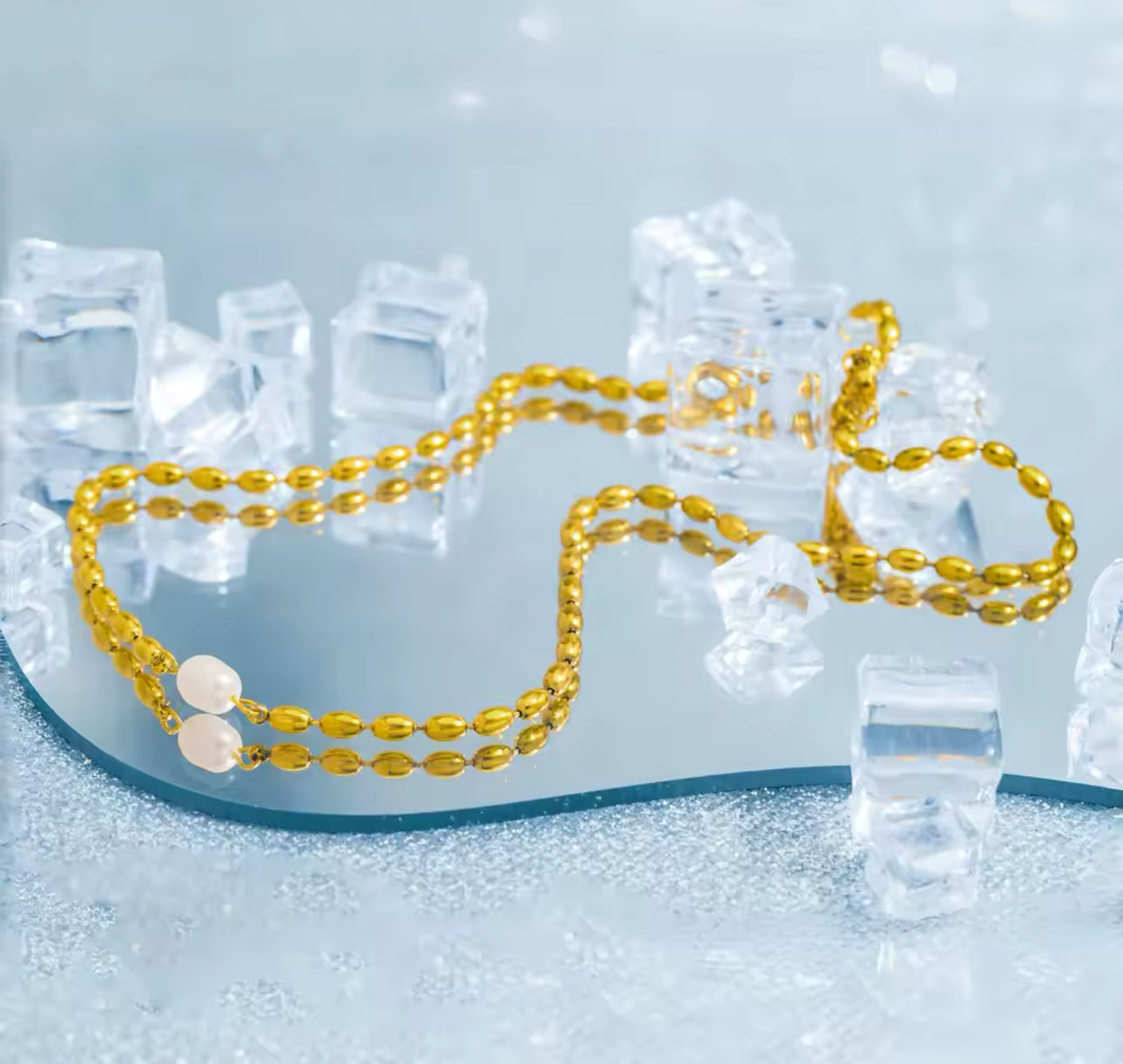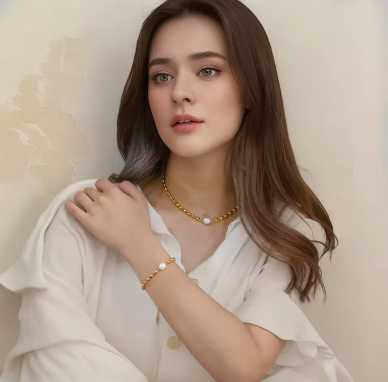 El Set Acero y Perla es perfecto para complementar tu estilo diario. Hecho de acero inoxidable enchapado en oro de 18k, este set de collar y pulsera durará por mucho tiempo. Las perlas naturales añaden un toque elegante y sofisticado a cualquier atuendo. ¡Actualiza tu colección de accesorios con este set de alta calidad!