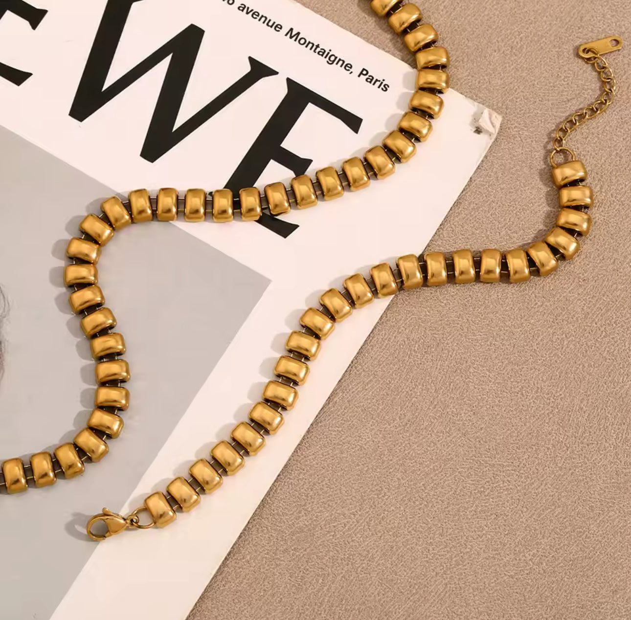 Cadena y pulsera de acero inoxidable chapado en oro 18k con eslabones rectangulares