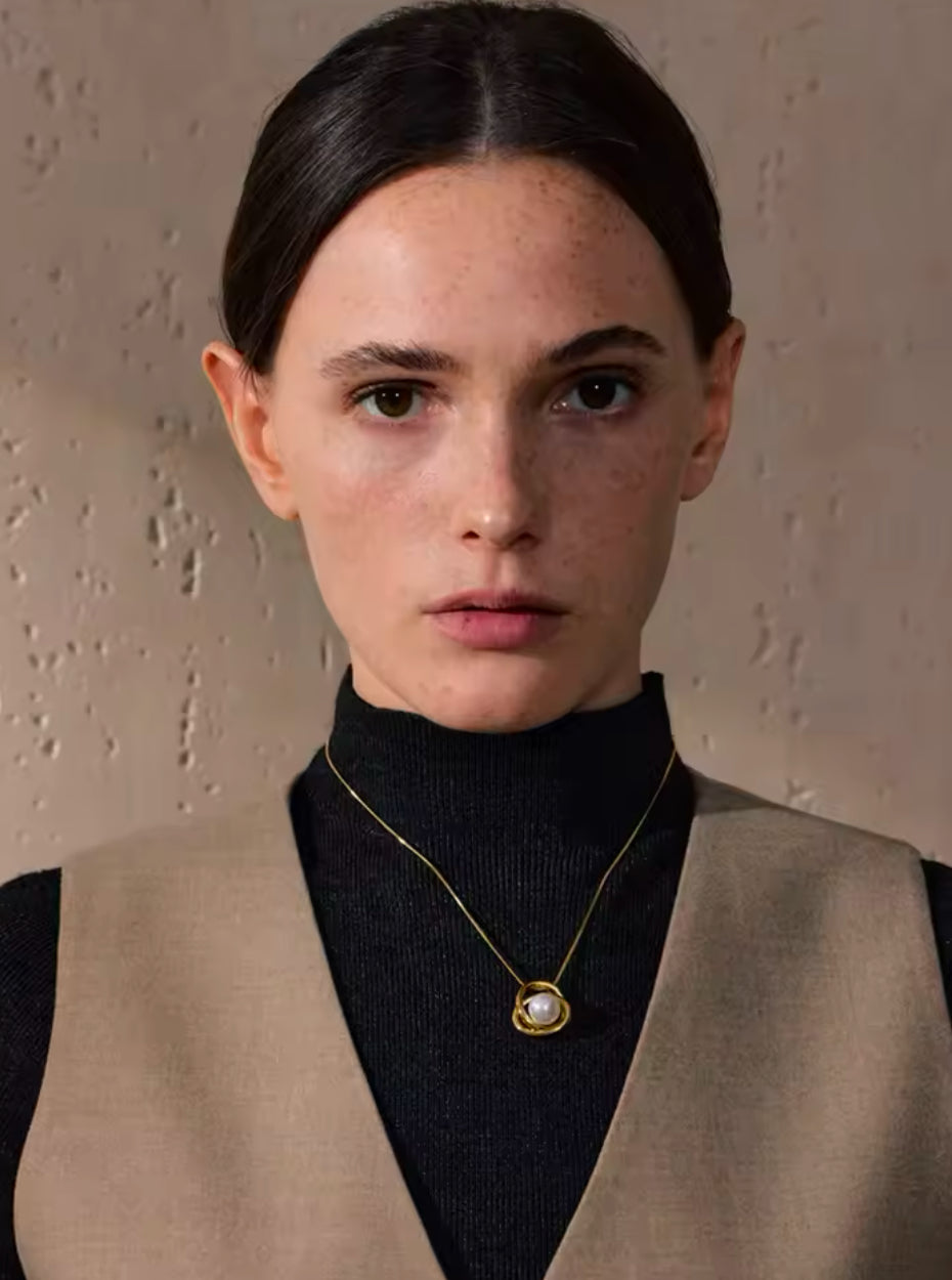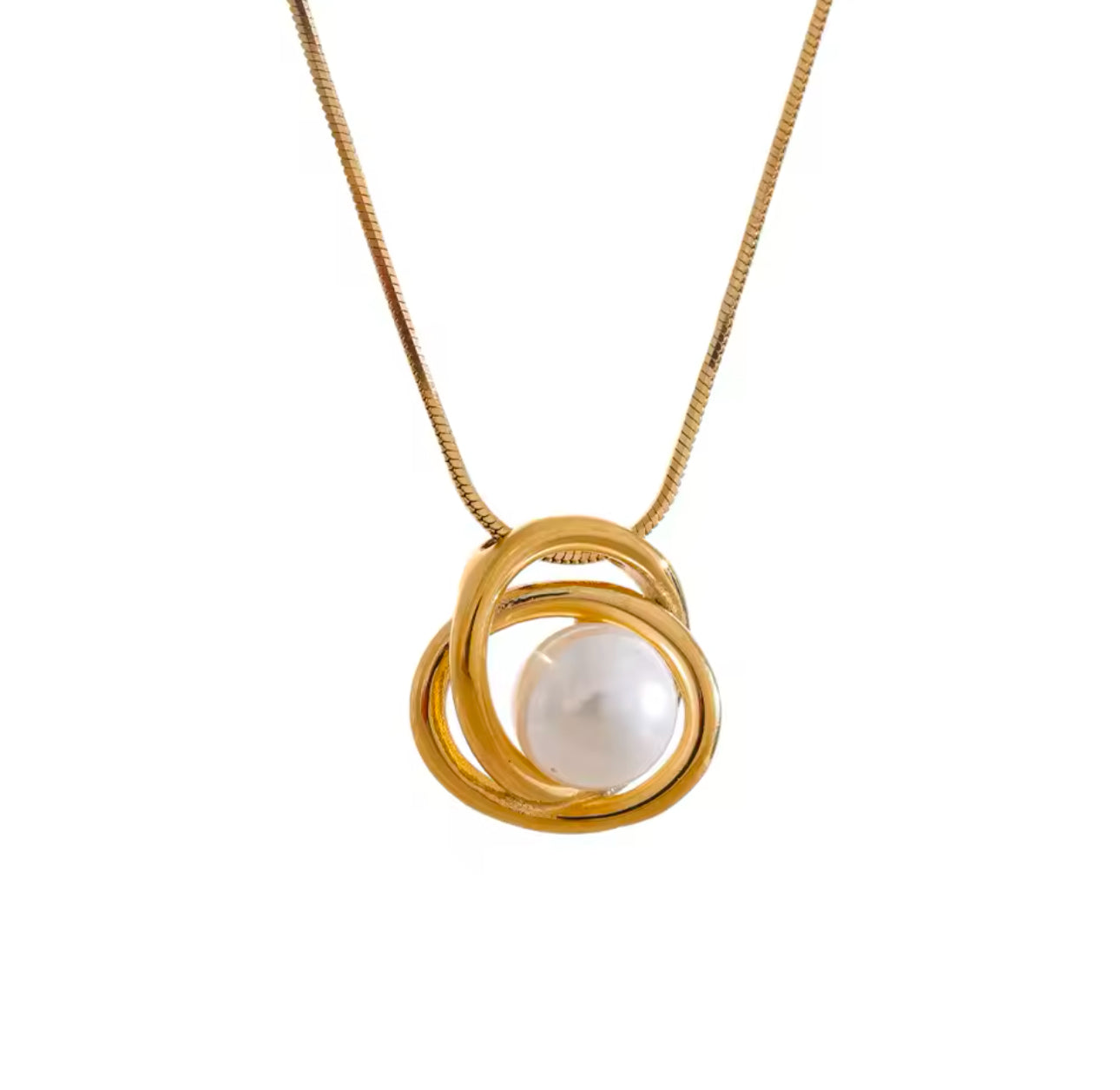 Cadena y Pendientes redondos de perlas de imitación de estilo coreano para mujer, joyería de moda elegante y versátil para uso diario, regalo antialérgico, pvd18k