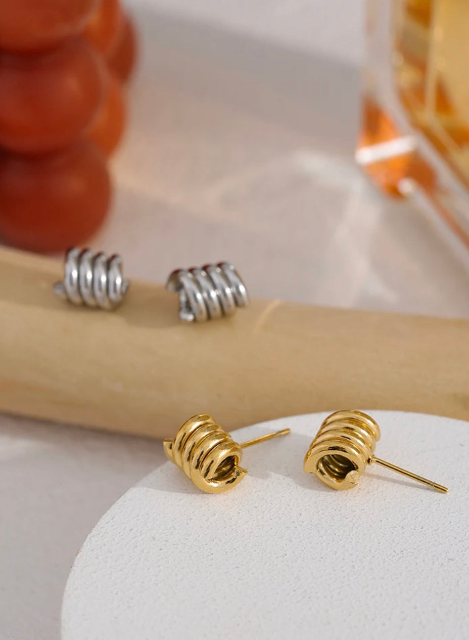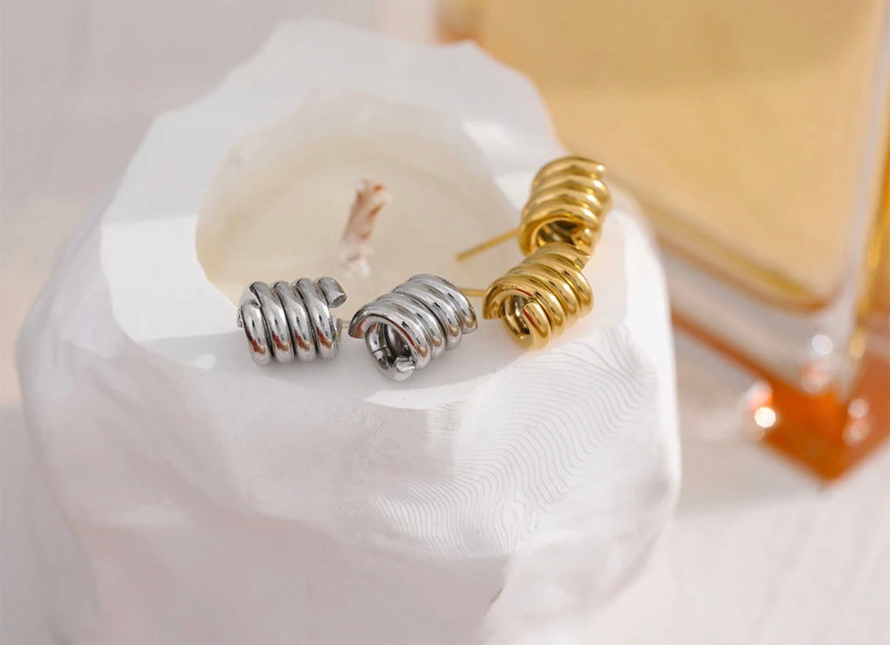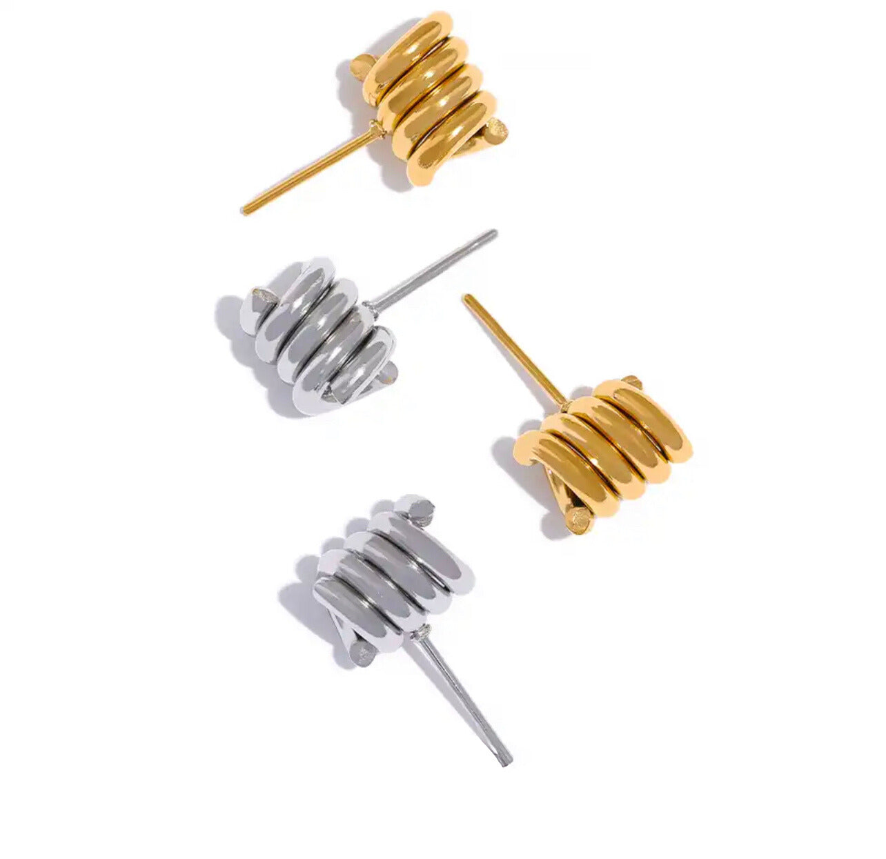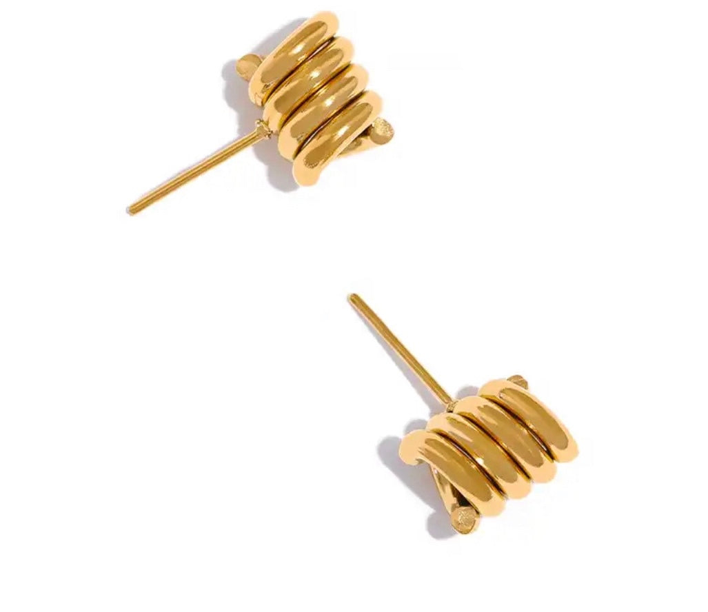 Aretes asimétricos de acero inoxidable enchapado en oro real de 18k impermeables e hipoalergénicos. Dorado disponible.
