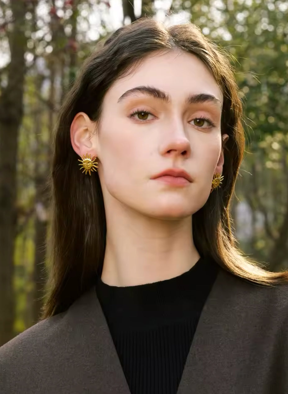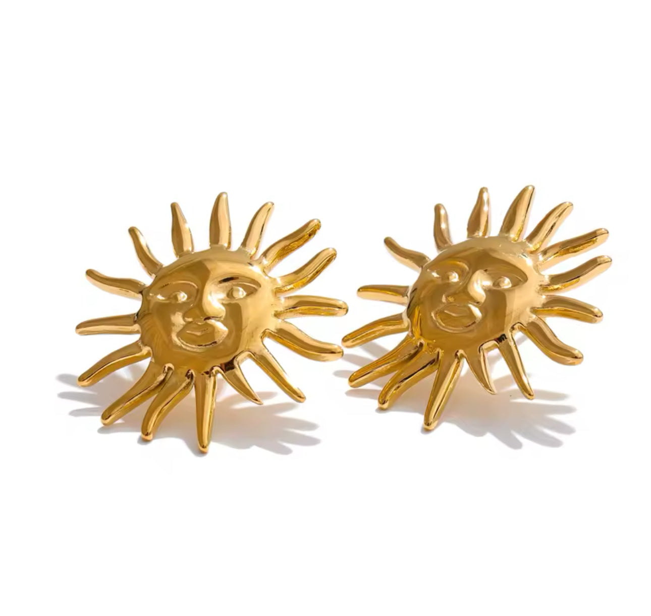 Aretes de acero inoxidable enchapados en pvd oro 18k en forma de sol para uso diario