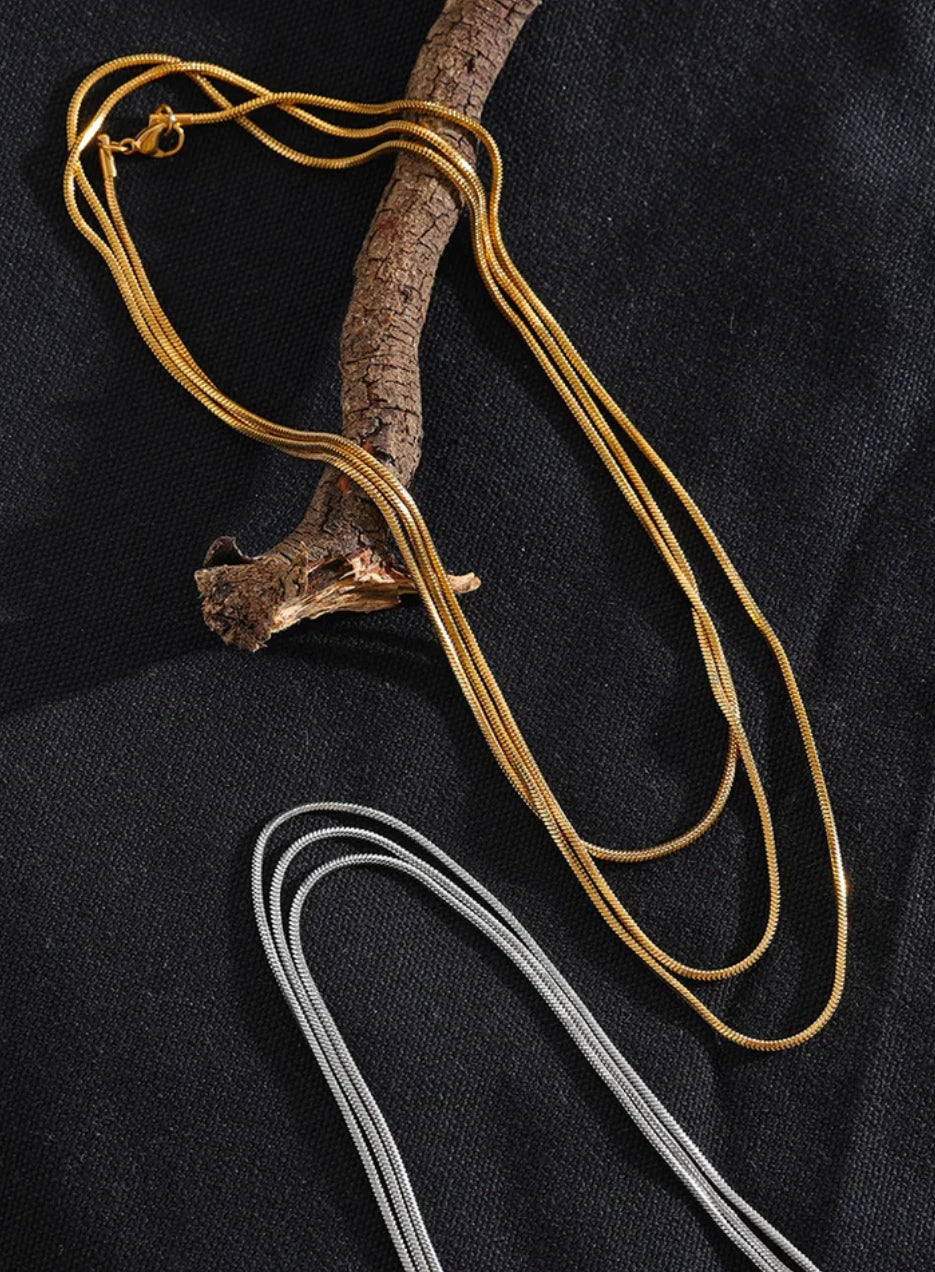 Collar de cadena larga ajustable en capas de acero inoxidable, resistente al agua, chapado en oro de 18K, joyería de moda de Metal
