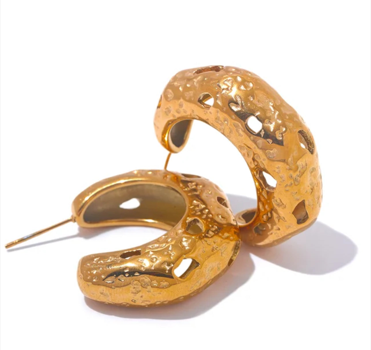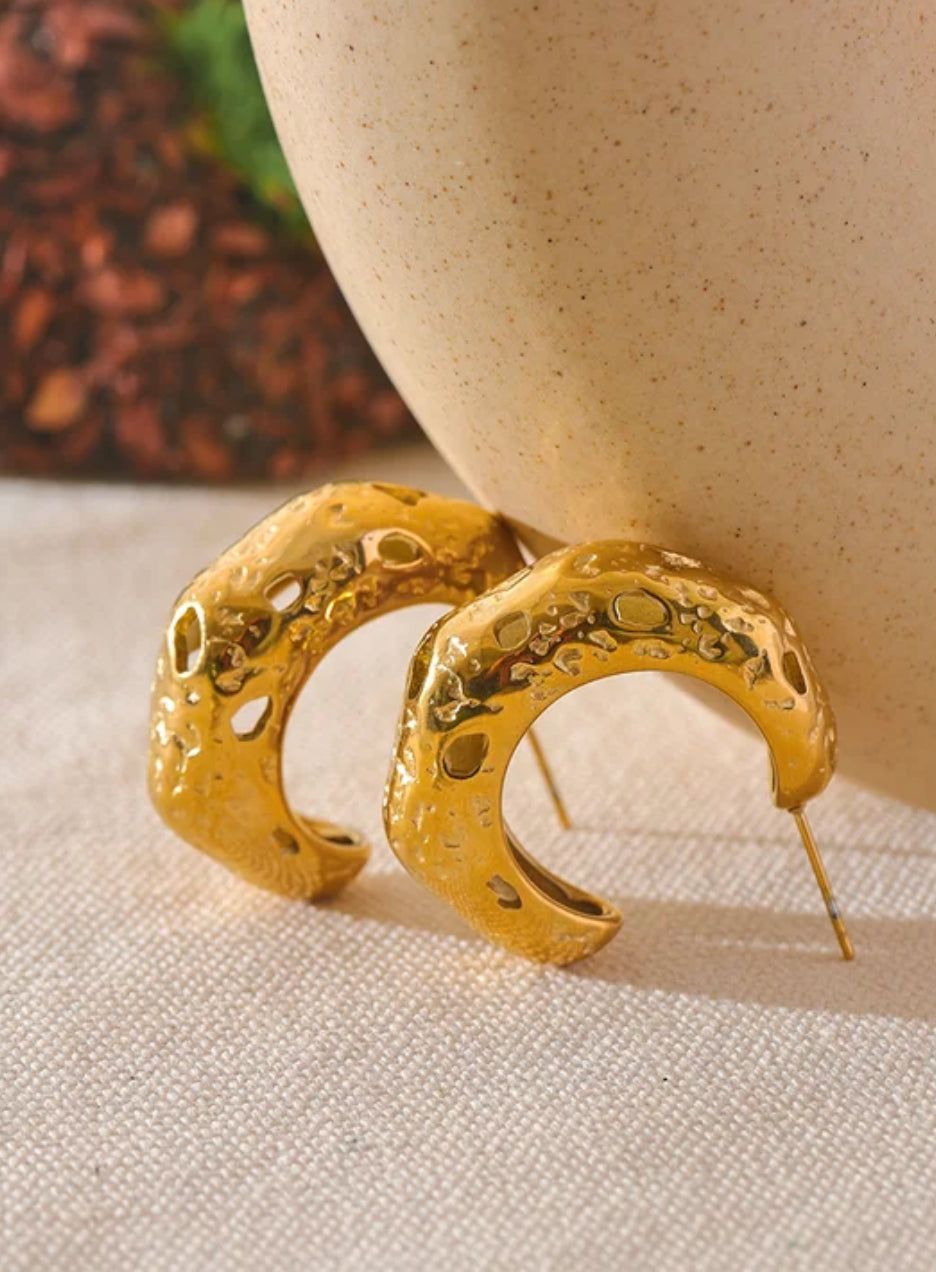 Los Vintage Hammer C - Hoops son unos elegantes aretes de acero inoxidable 316L pvd 18k, inspirados en la Joyería colombiana. Su estilo vintage único, con acabados martillados, los hace ideales para cualquier ocasión. Fabricados con materiales de alta calidad, estos aretes son duraderos y aportan un toque de lujo a tu look.